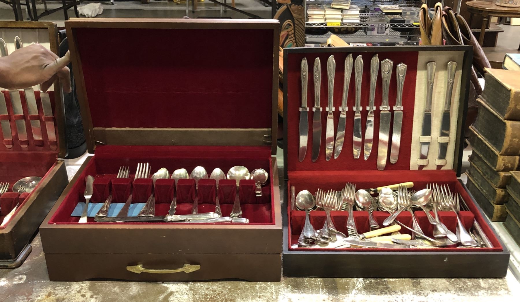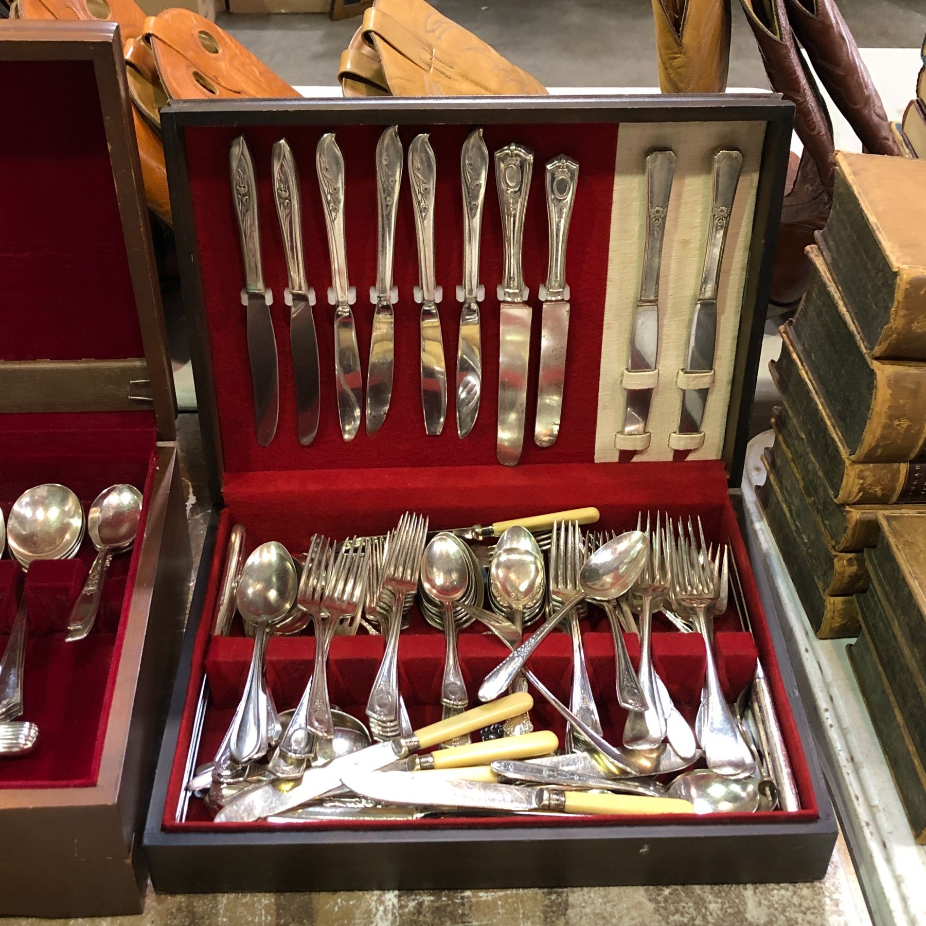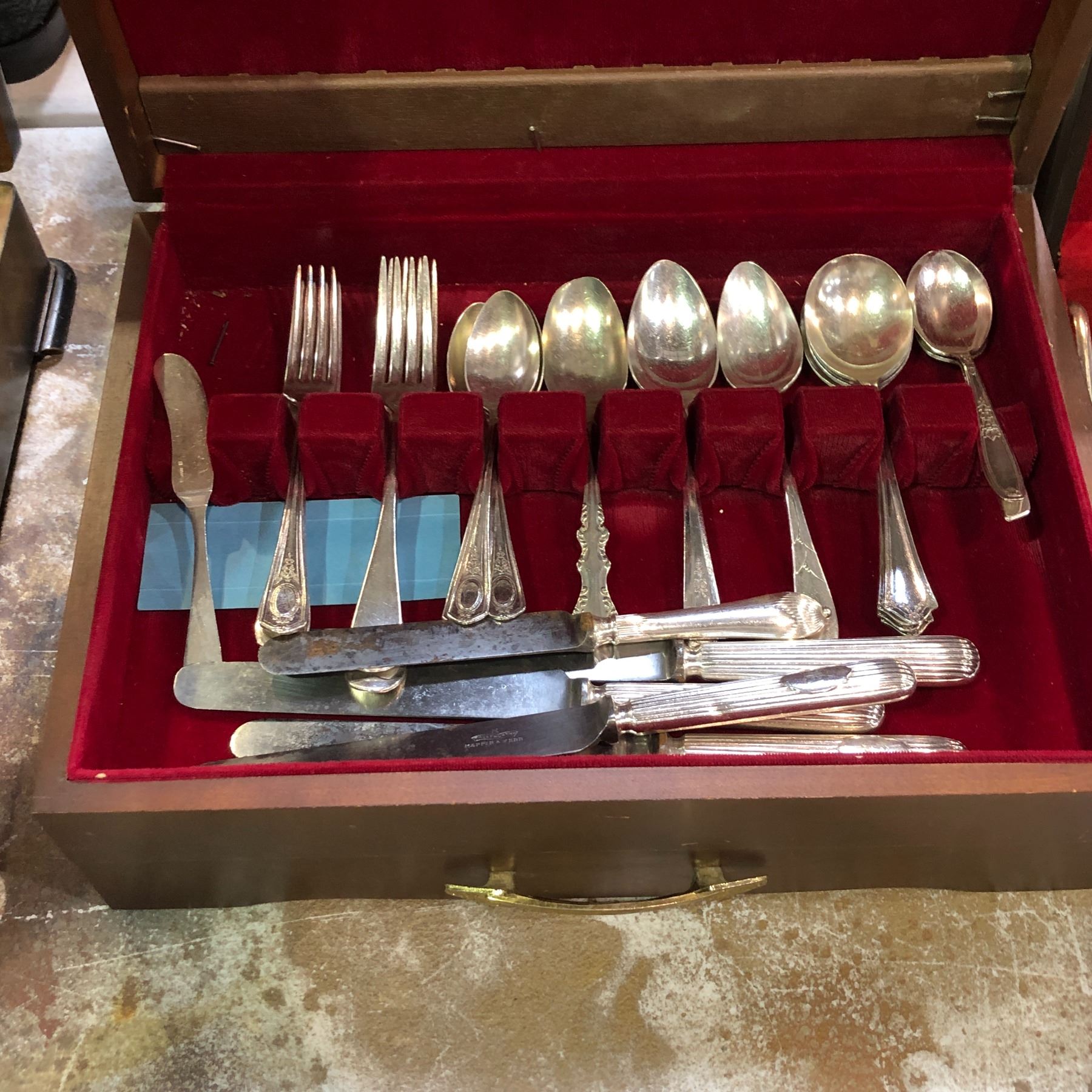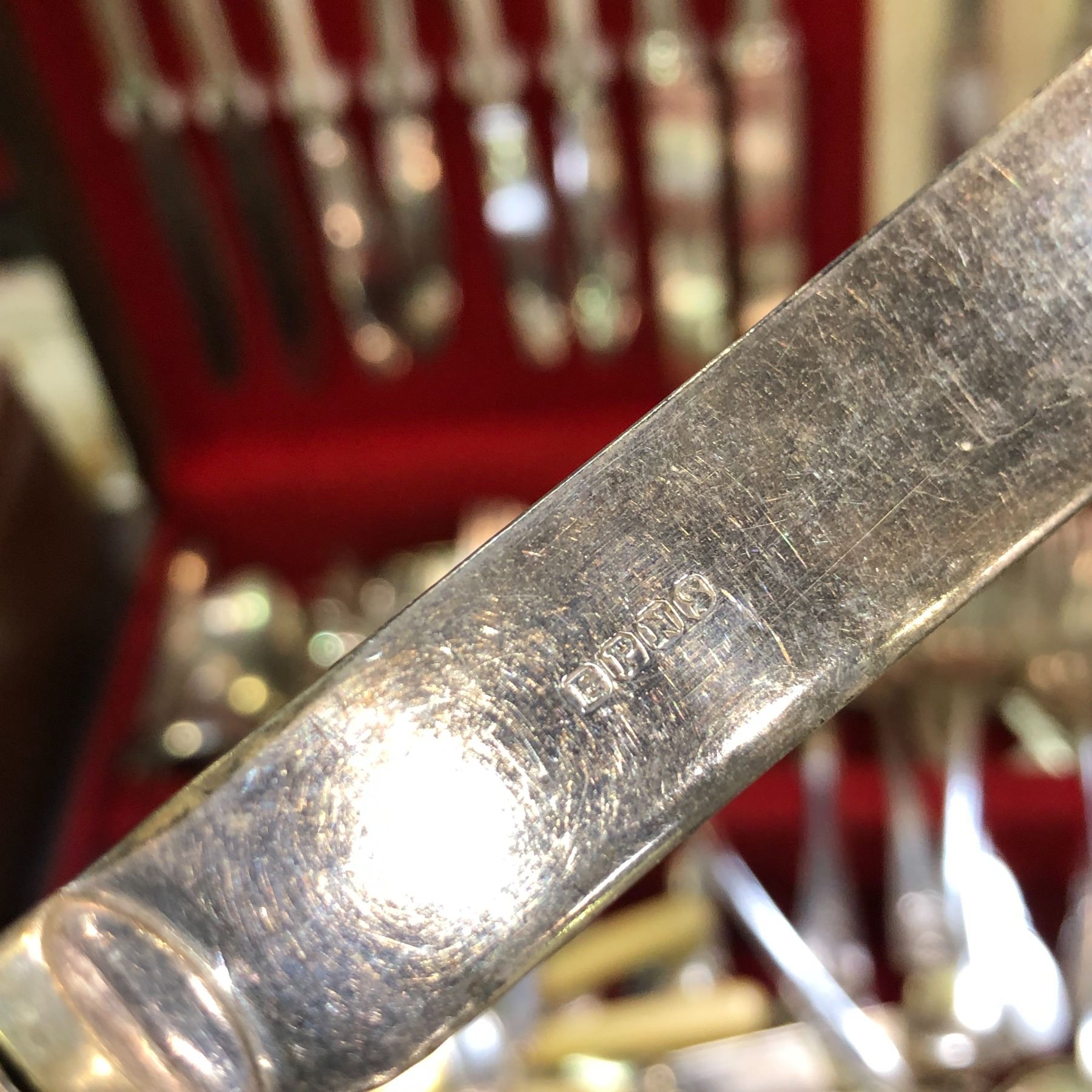 Mix lot of assorted silverware & stainless steel flatware - includes EPNS silver serving etched knives Elkington & Co Silversmith & cutlers etc