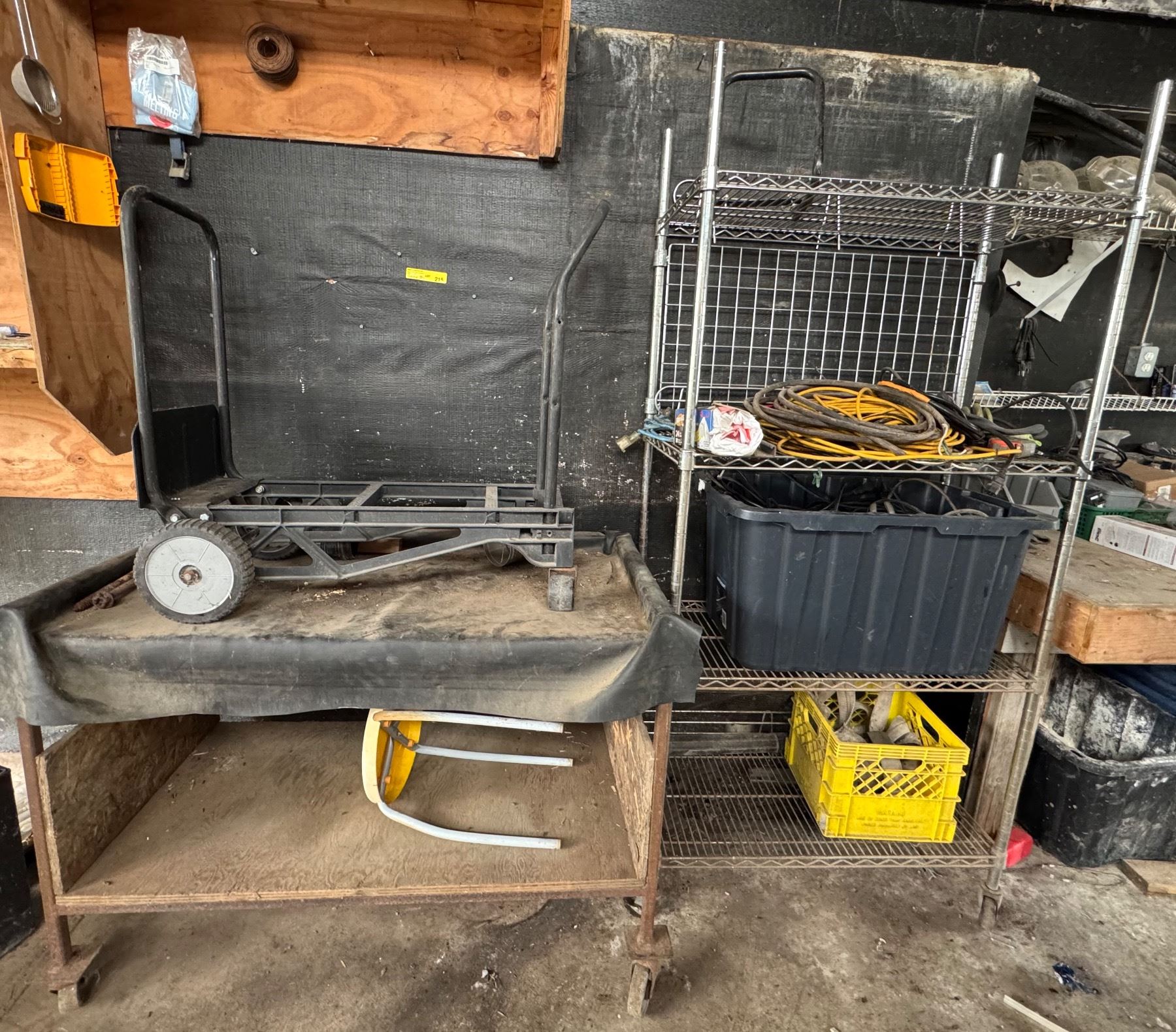 Mixed Lot, Dolly, Steel Wire Shelf, Rolling Work Cart, Cables and More
