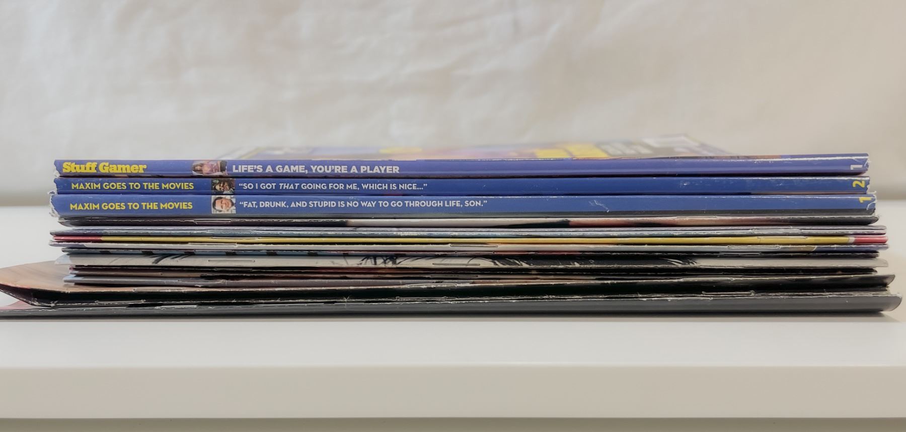 Large mixed lot featuring Maxim Goes to the Movies issues #1 & #2, Stuff Gamer issue #1, and over a dozen collectible bonus and supplemental publications including FHM and Stuff “Hottest” lists, Maxim Hot 100 specials, The Girls of FHM, and 2000–2001 calendars. Includes multiple hard-to-find limited issues in very good vintage condition, ideal for collectors of early-2000s men’s magazine pop culture.