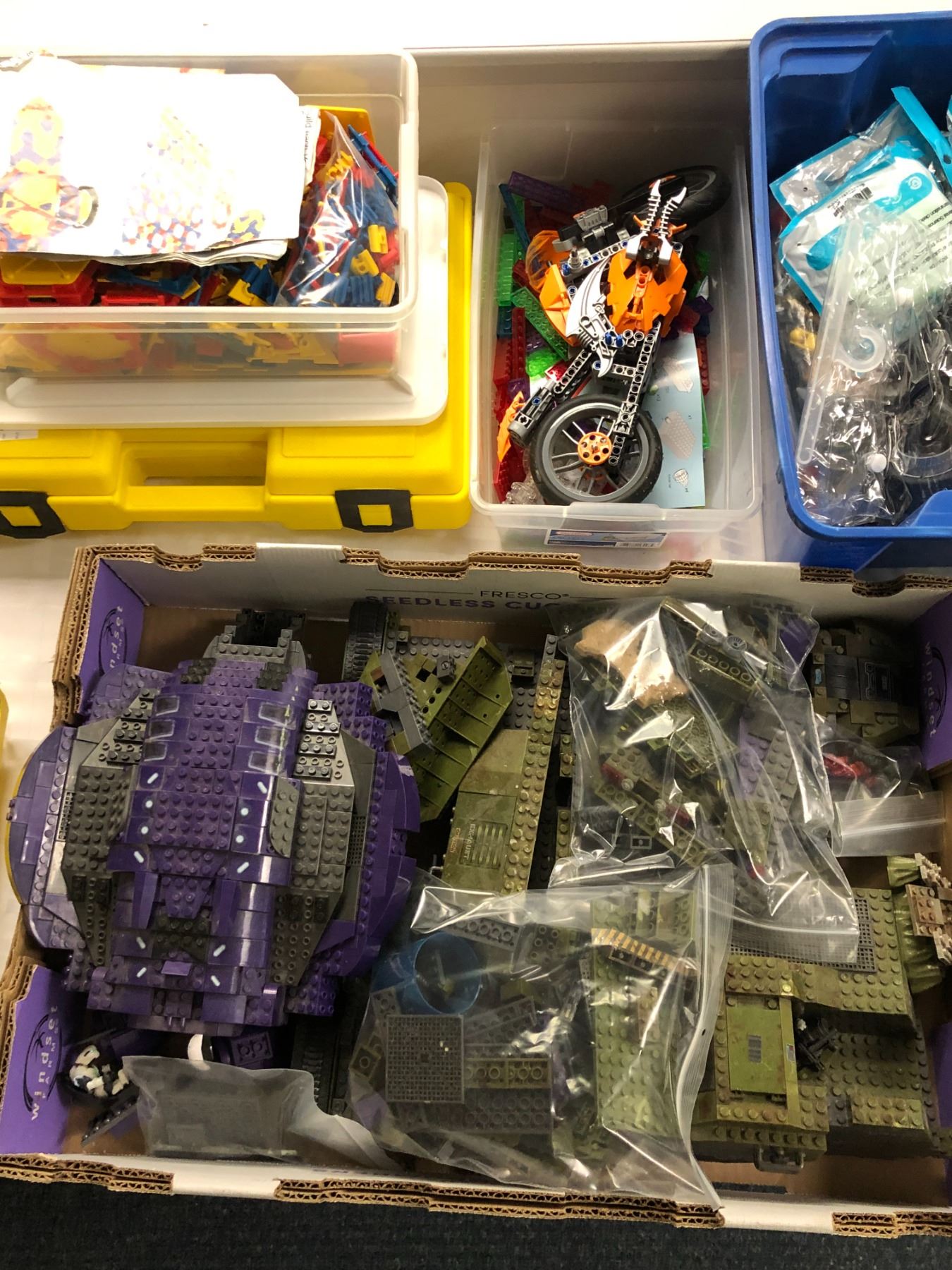 Mixed table lot - Mega Blok Halo vehicles/ LEGO blocks/ toys and other constructs