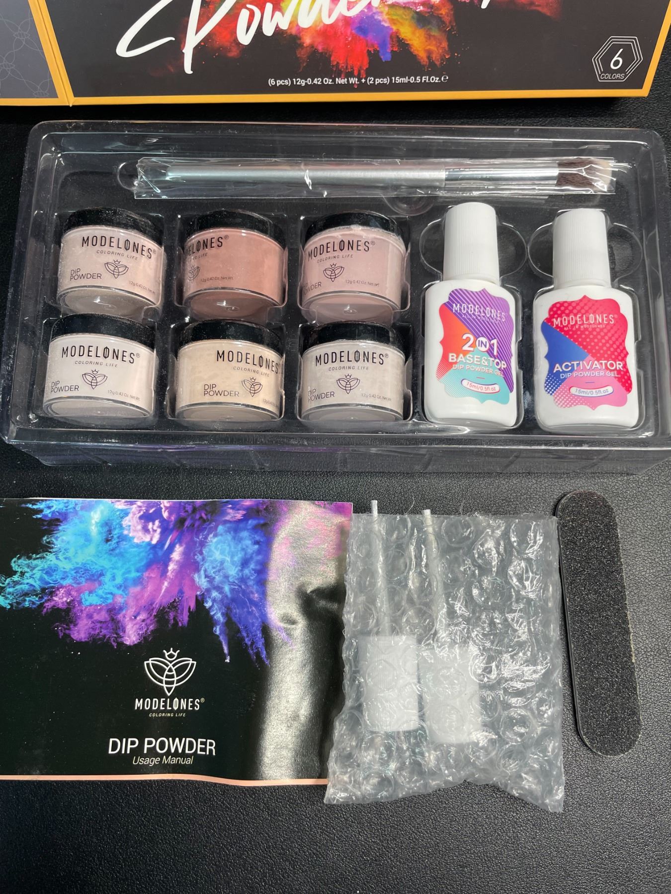 - Modelones 6 Colors Dip Powder Nail Kit Starter, Classic Brown Acrylic Dipping Powder System Liquid Set with Base & Top Coat Activator Dip Nail Kit French Nail Art Beginner Manicure Tools DIY Salon