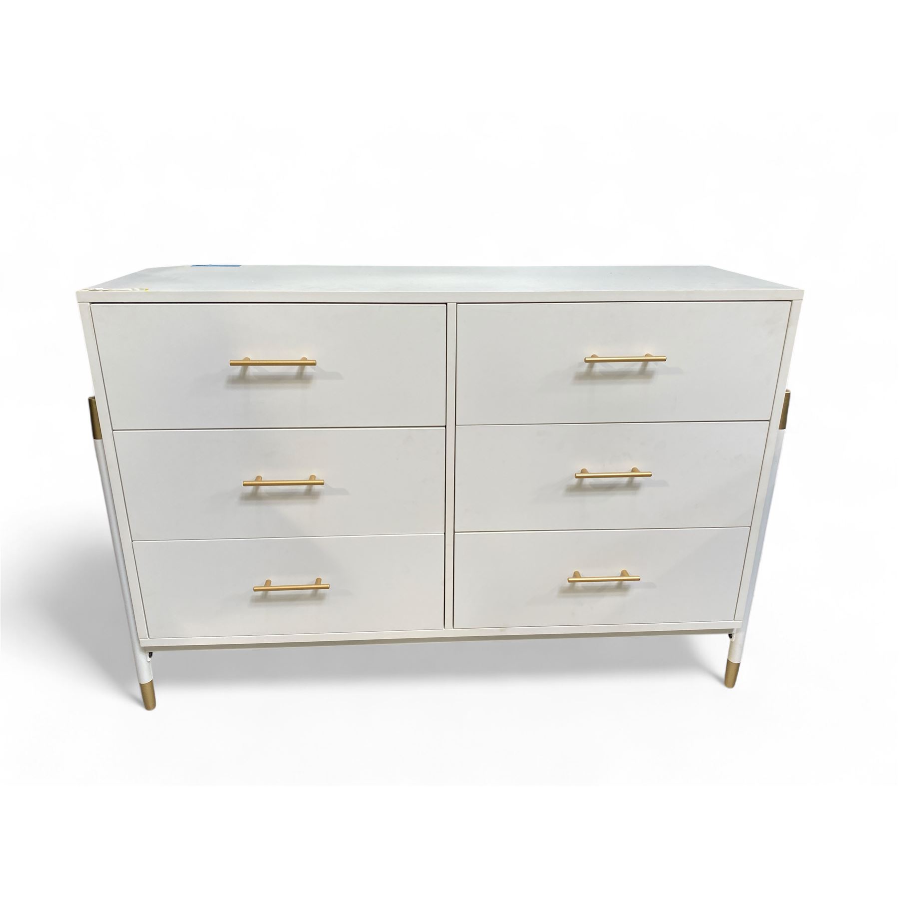 Modern White & Gold 6-Drawer Dresser - approx. 47" x 16" x 34"