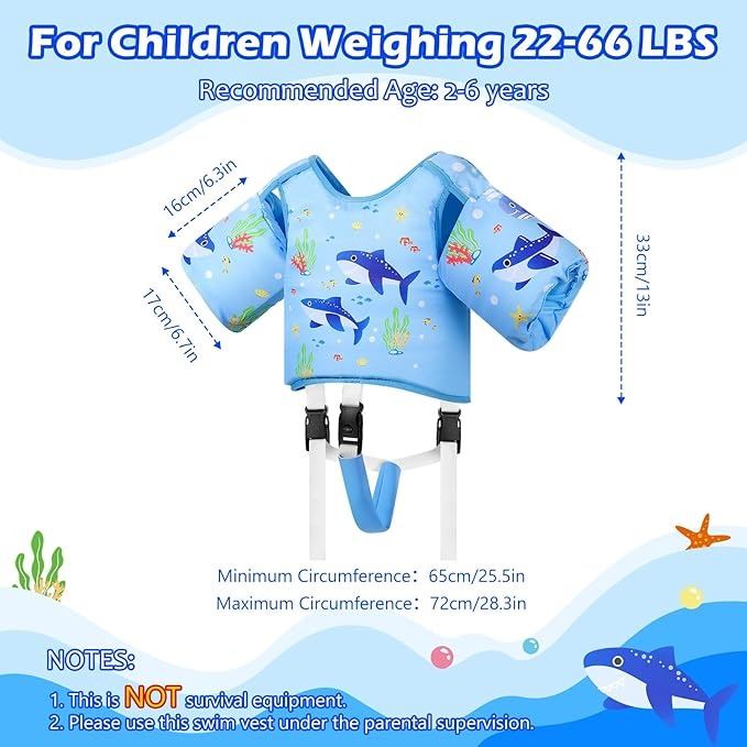 - MoKo Toddler Swim Vest, Cartoon Swim Jacket for Children Weighing 22-66 LBS, Toddler Floaties with Adjustable Crotch Strap, Swim Gear for Kids Water Sports Learning Swim Training Equipment