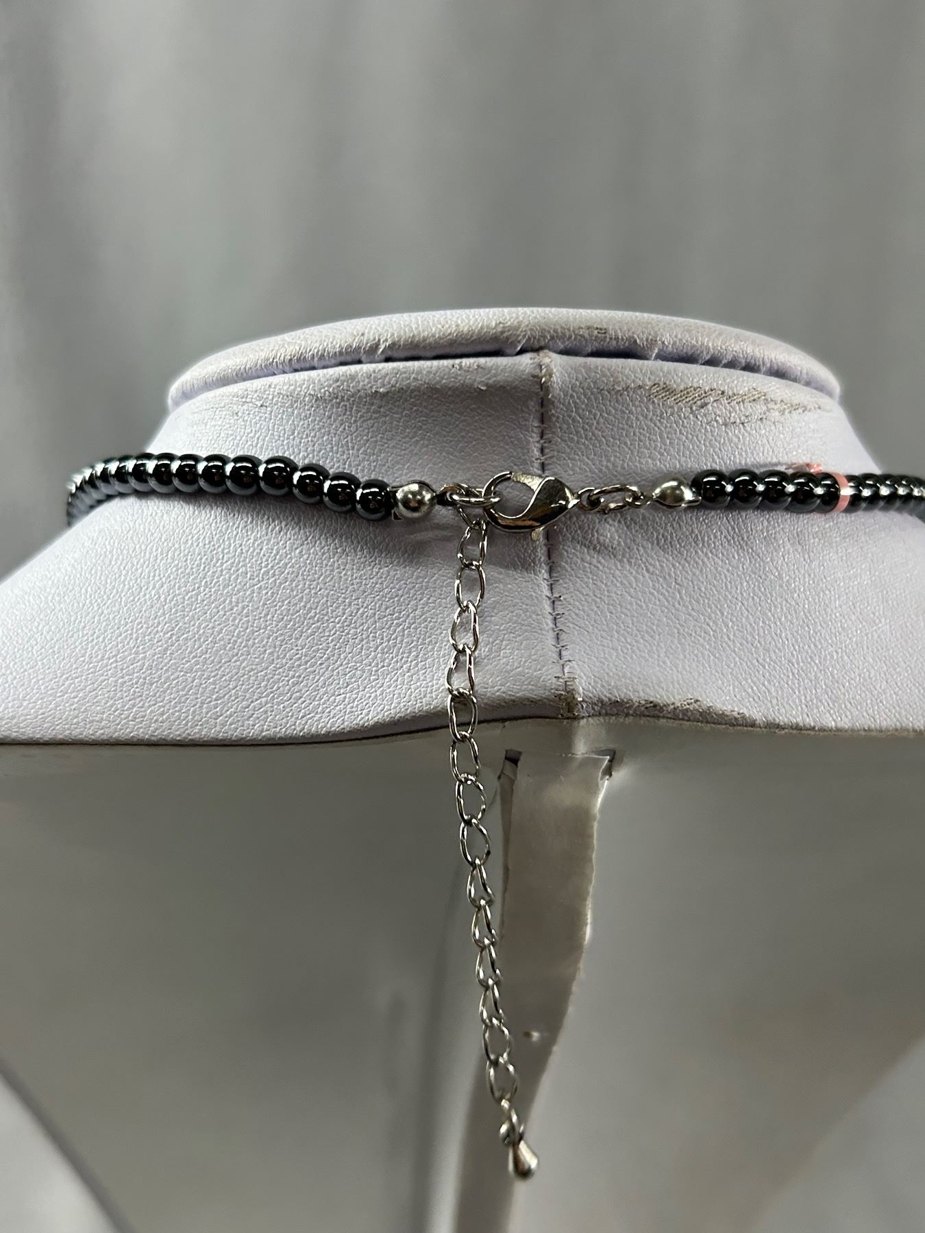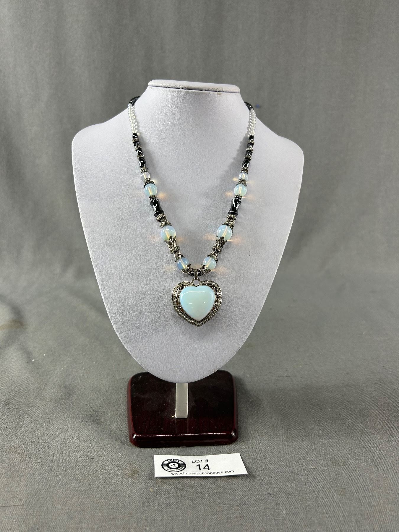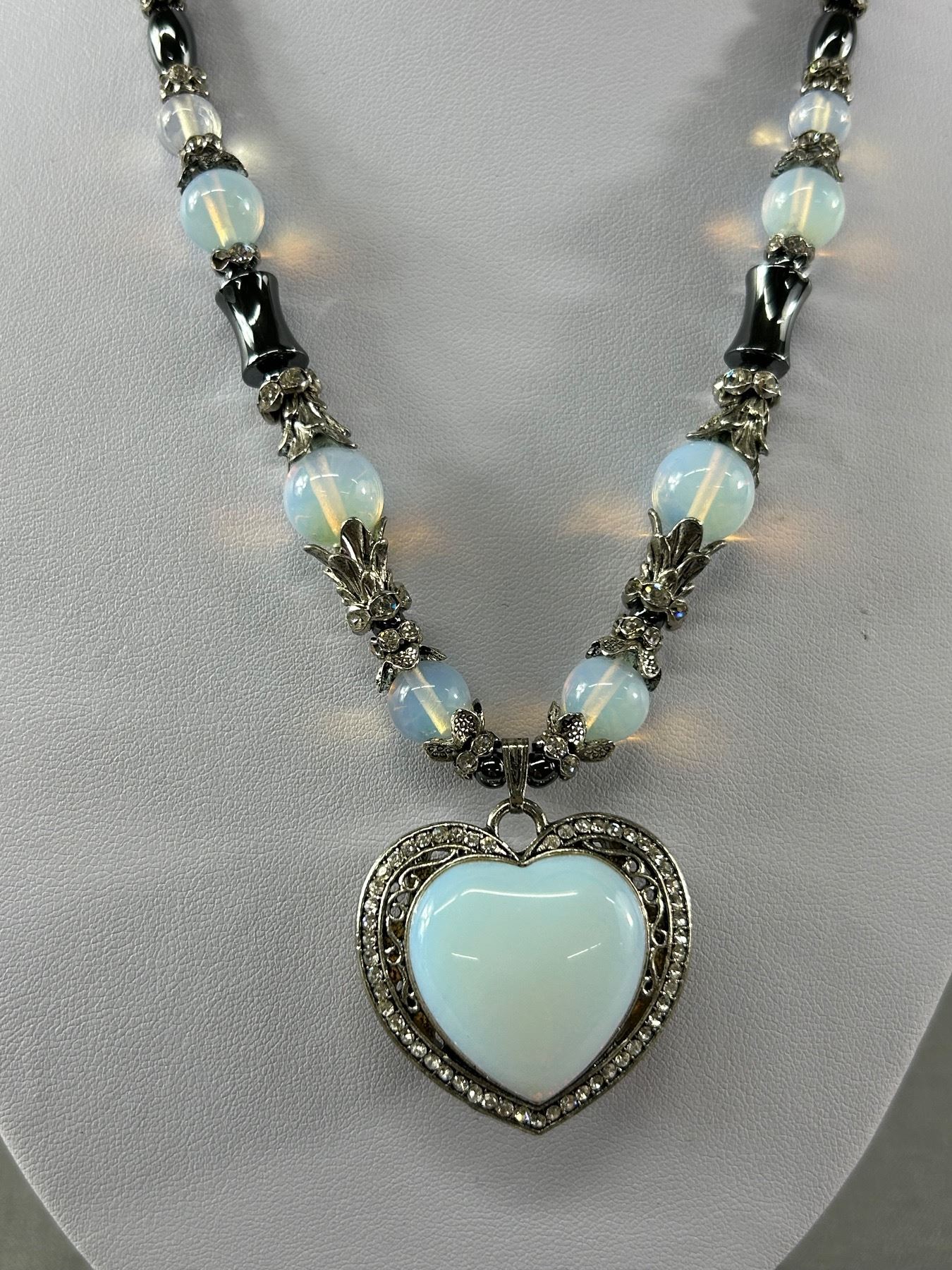 Moonstone Hematite Rhinestone 19" Necklace w/ 2" Heart Pendant