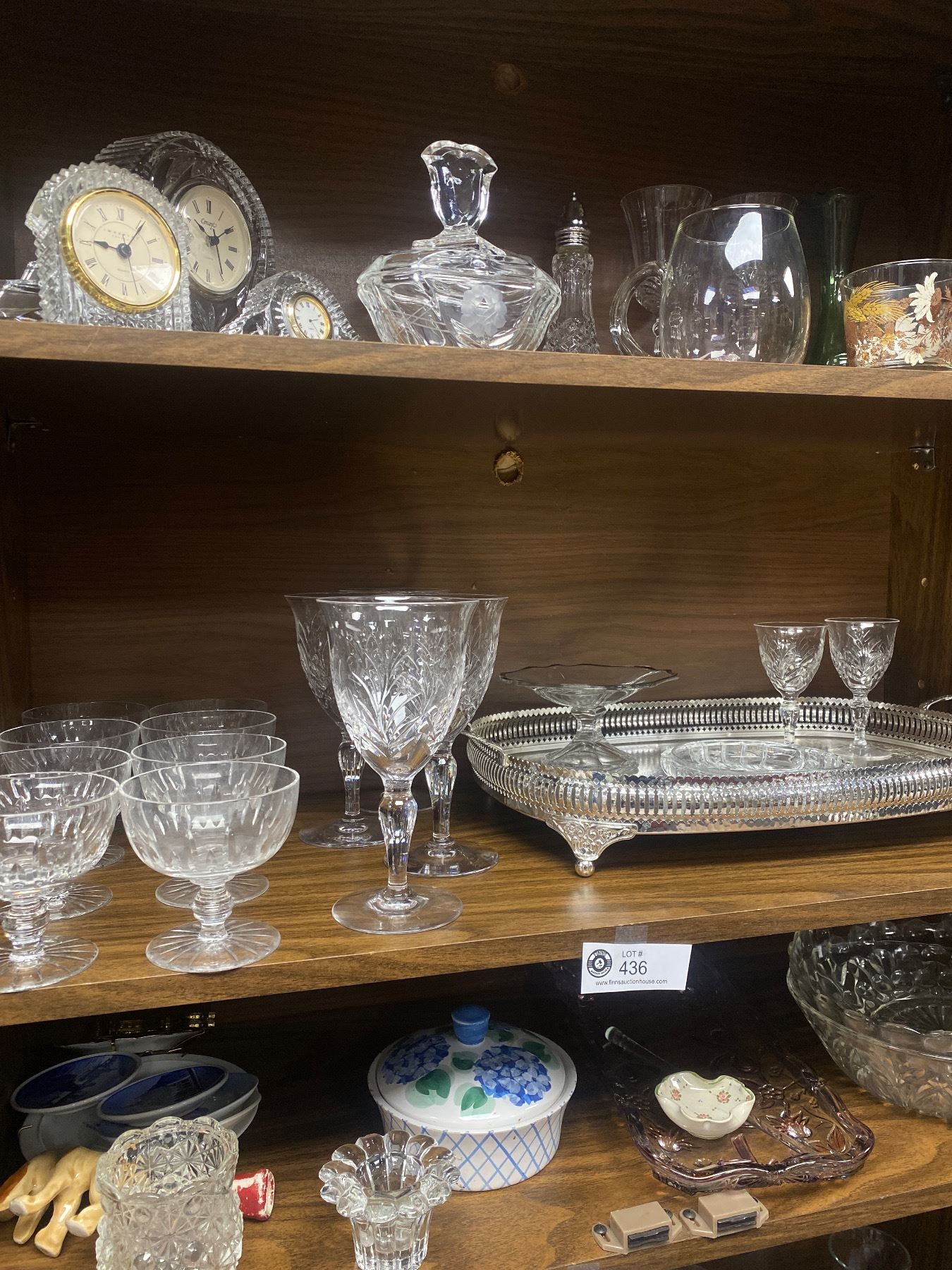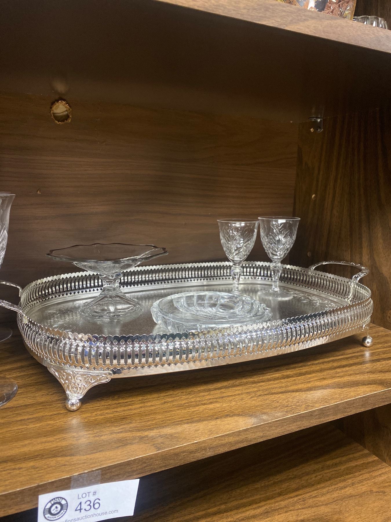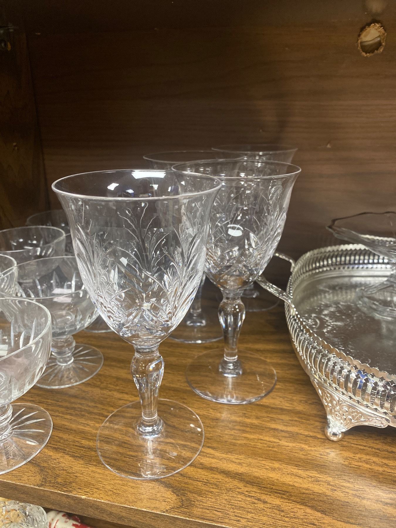 Mostly Crystal Lot - Dessert Glasses, Large Wine Glasses, Metal Serving Tray & More