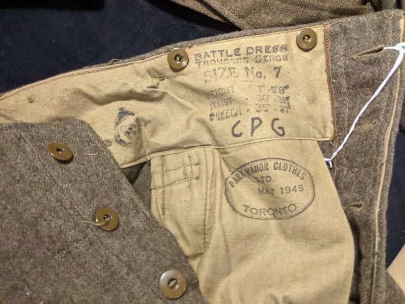Mostly WWII Canadian Battle Dress - pants made in 1945