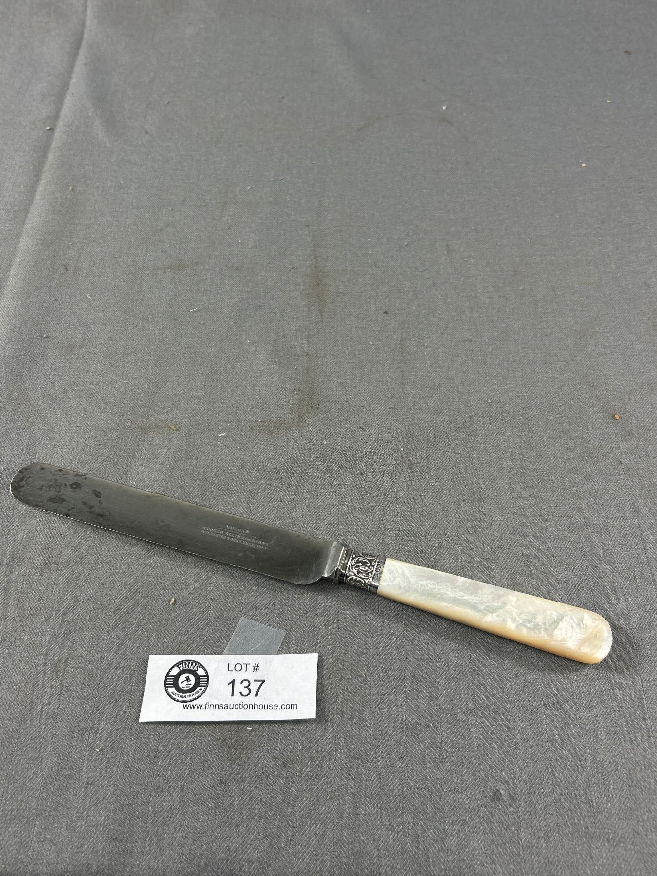 Mother of Pearl Sterling 10" Knife Sheffired Hallamark 1896