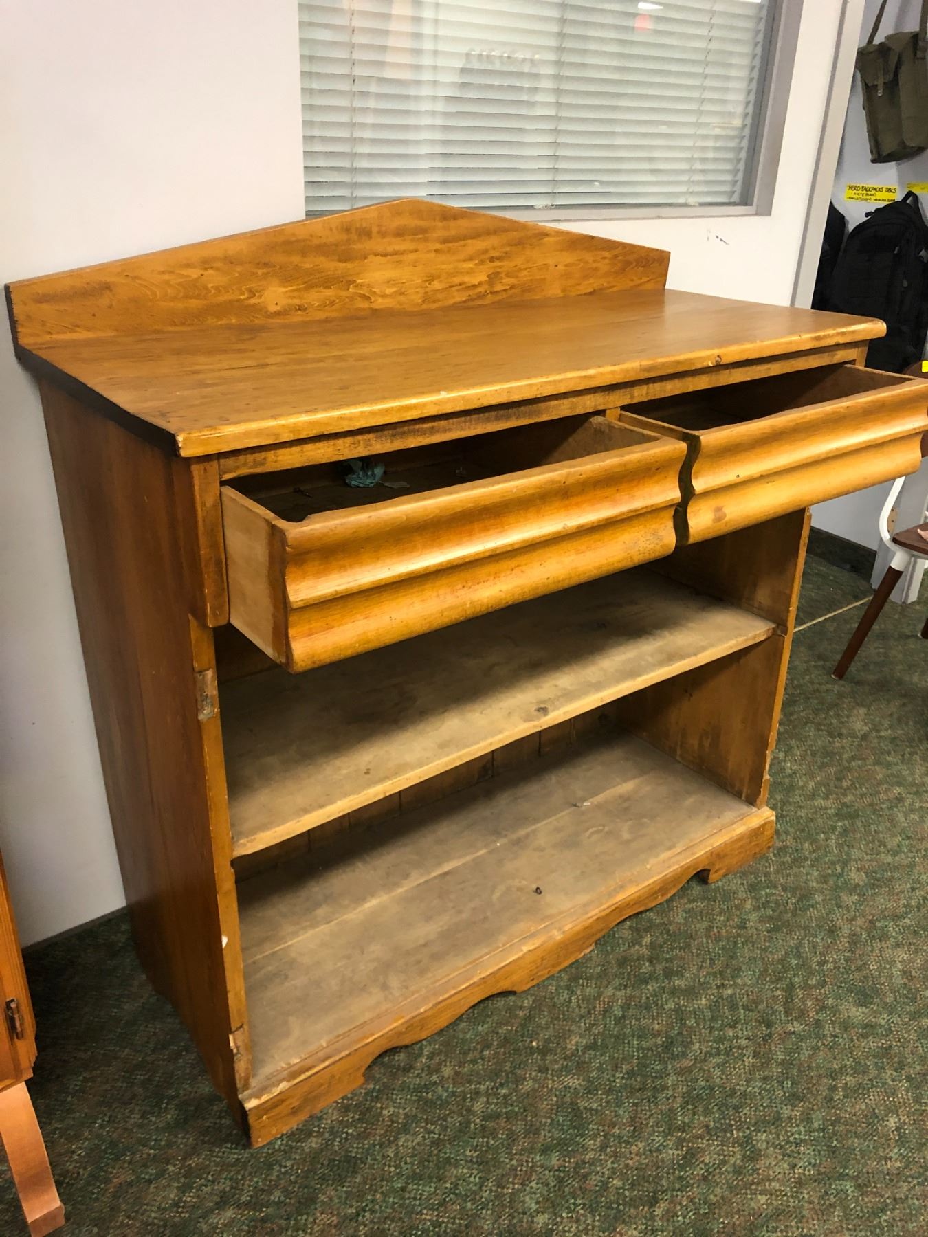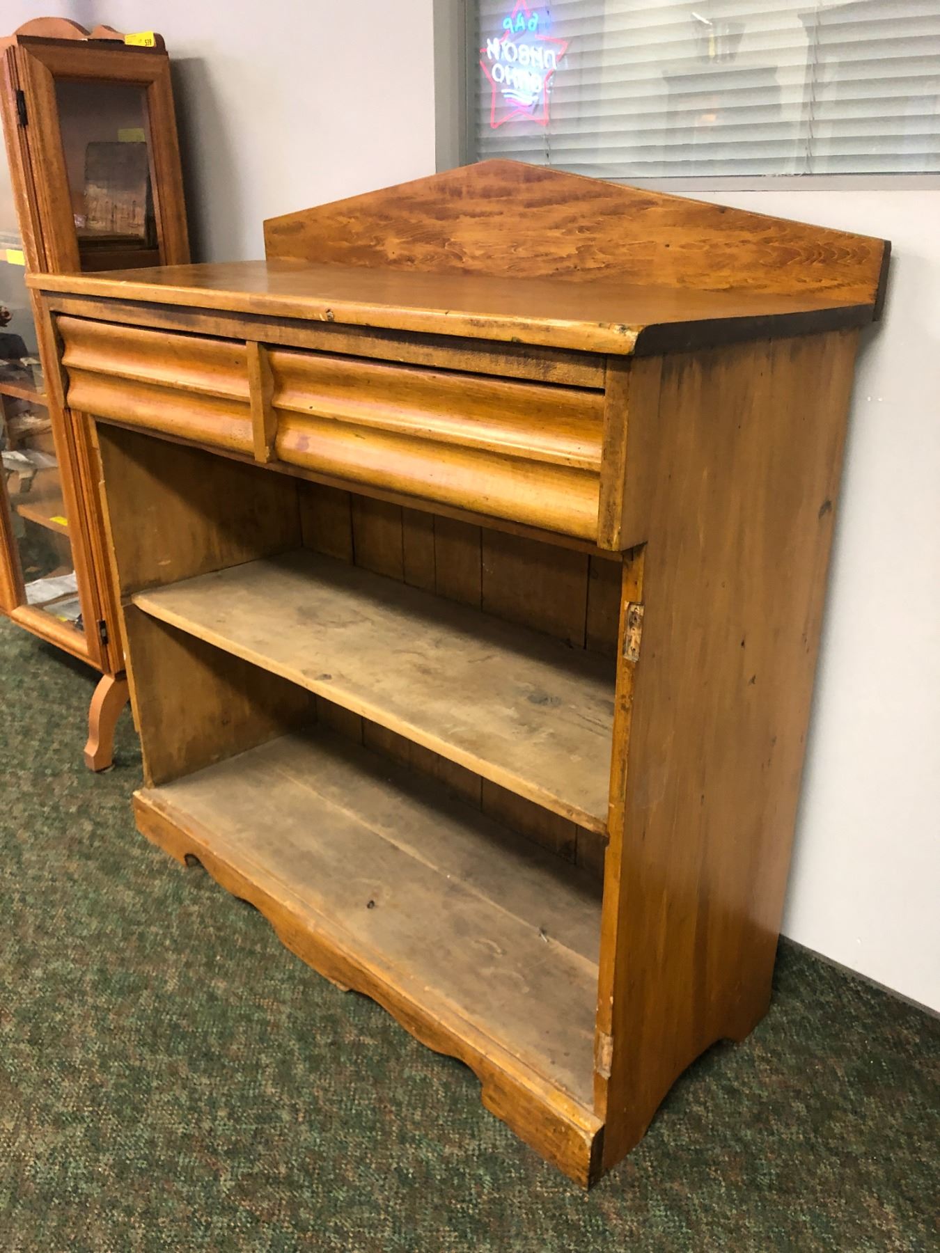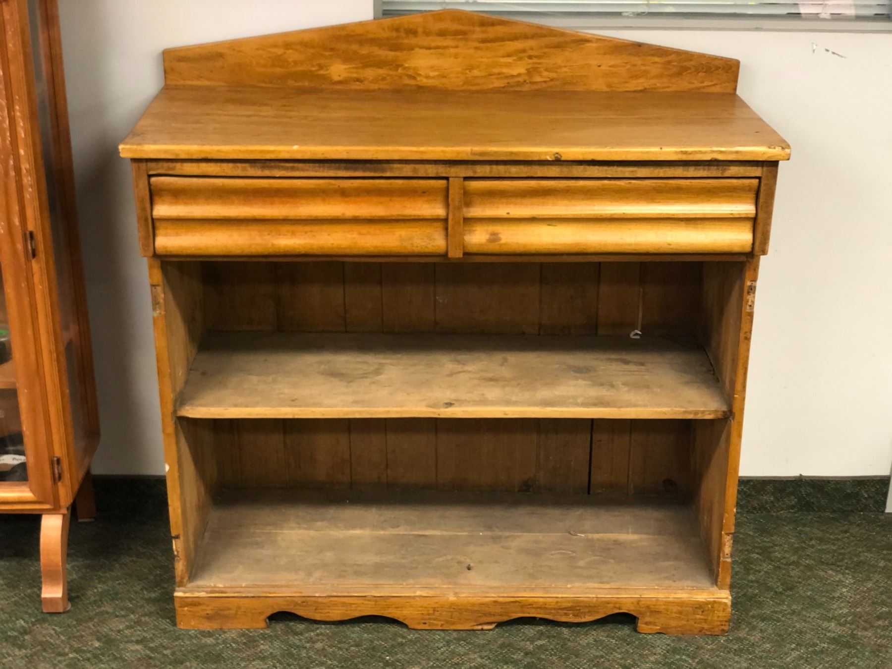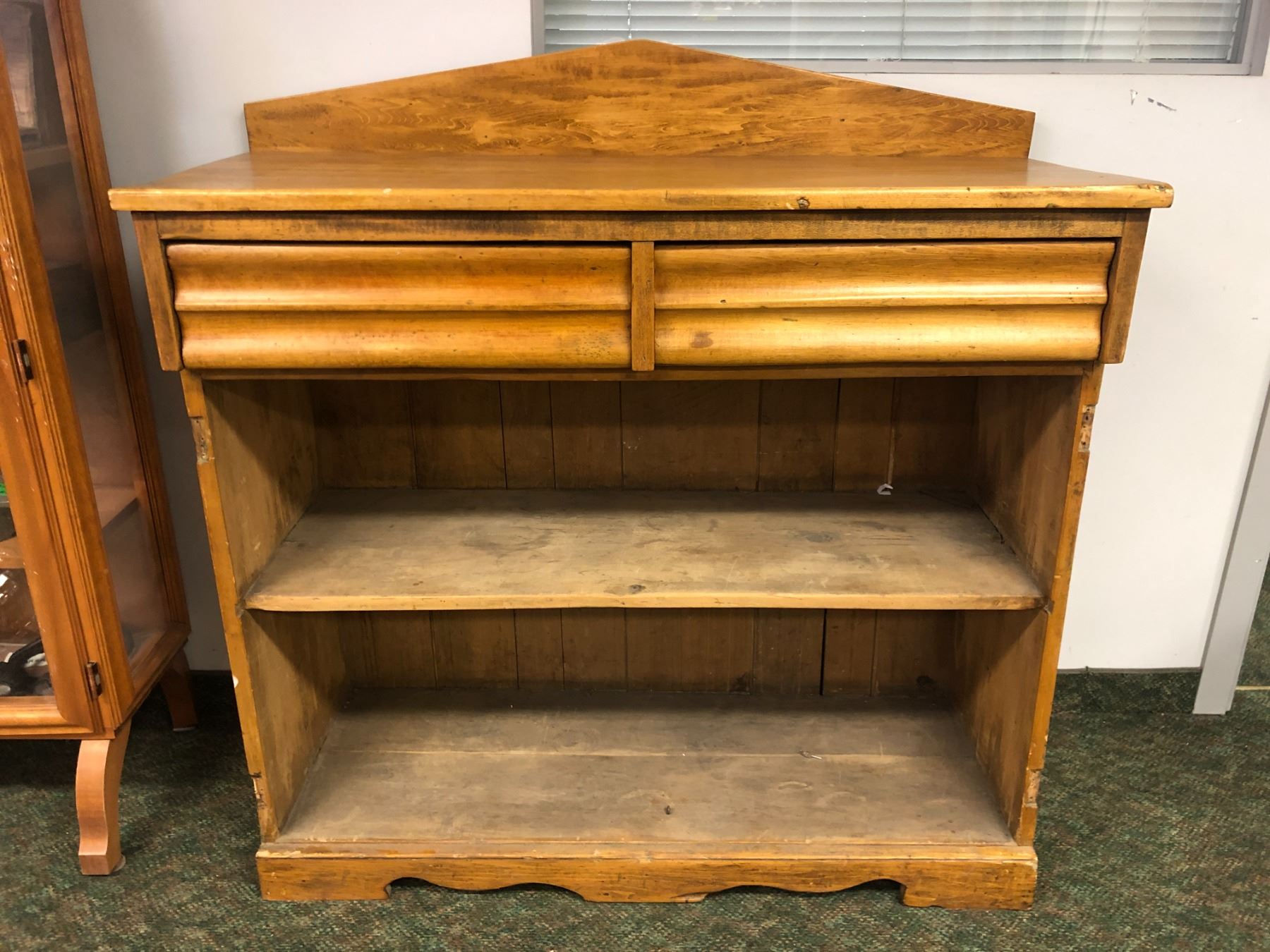 "Motherland: Fort Salem" - Antique pine 2 drawer high buffet cabinet (missing both front cabinet doors)