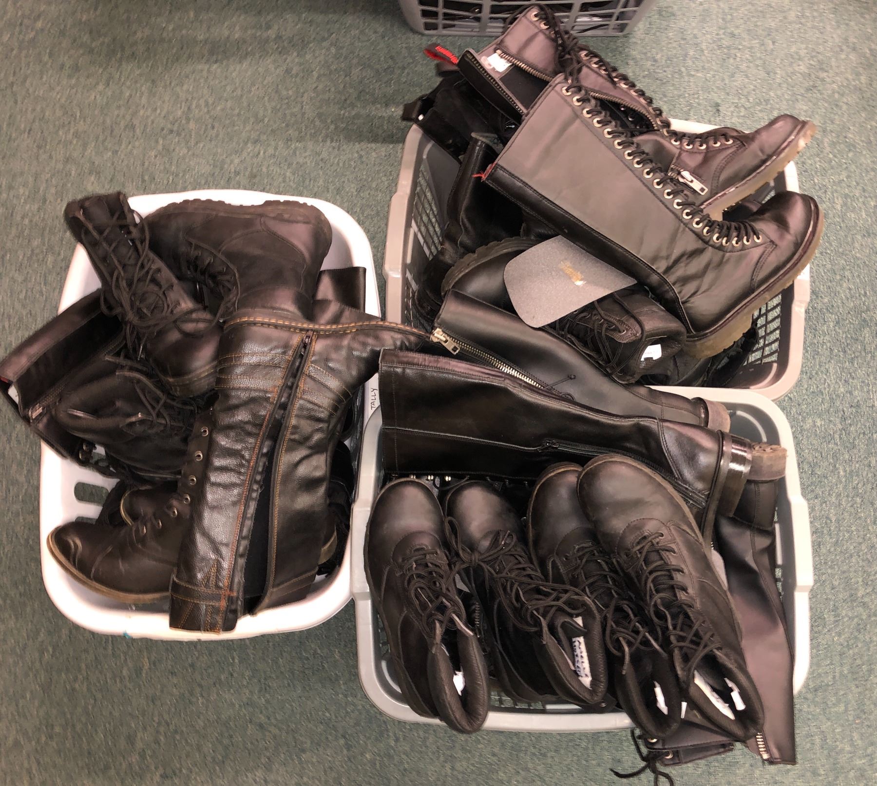 "Motherland: Fort Salem" - Approx. 18 pairs of assorted black boots & women's long boots