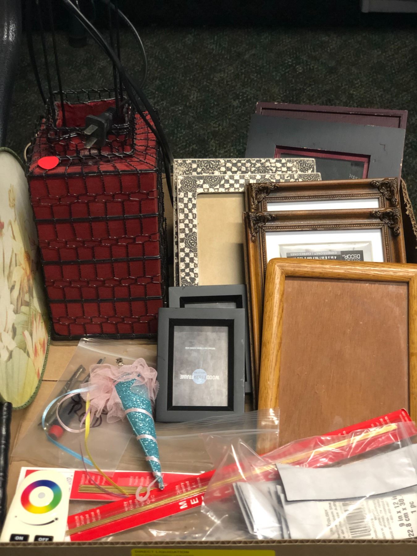 "Motherland: Fort Salem" - Box of misc. background props - small picture frames/ lantern etc.