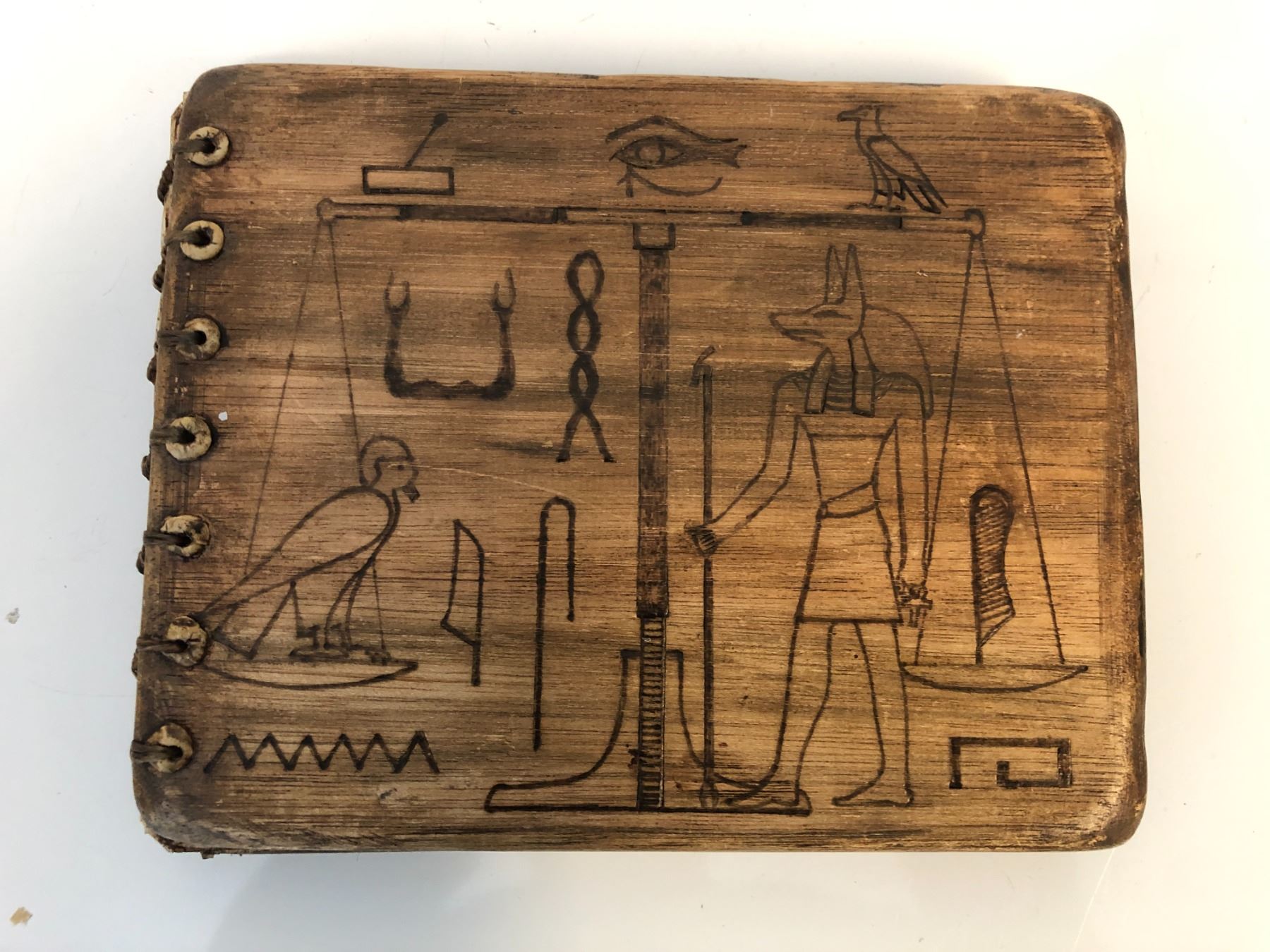 "Motherland: Fort Salem" - Egyptian motif wooden parchment book w/ blank pages