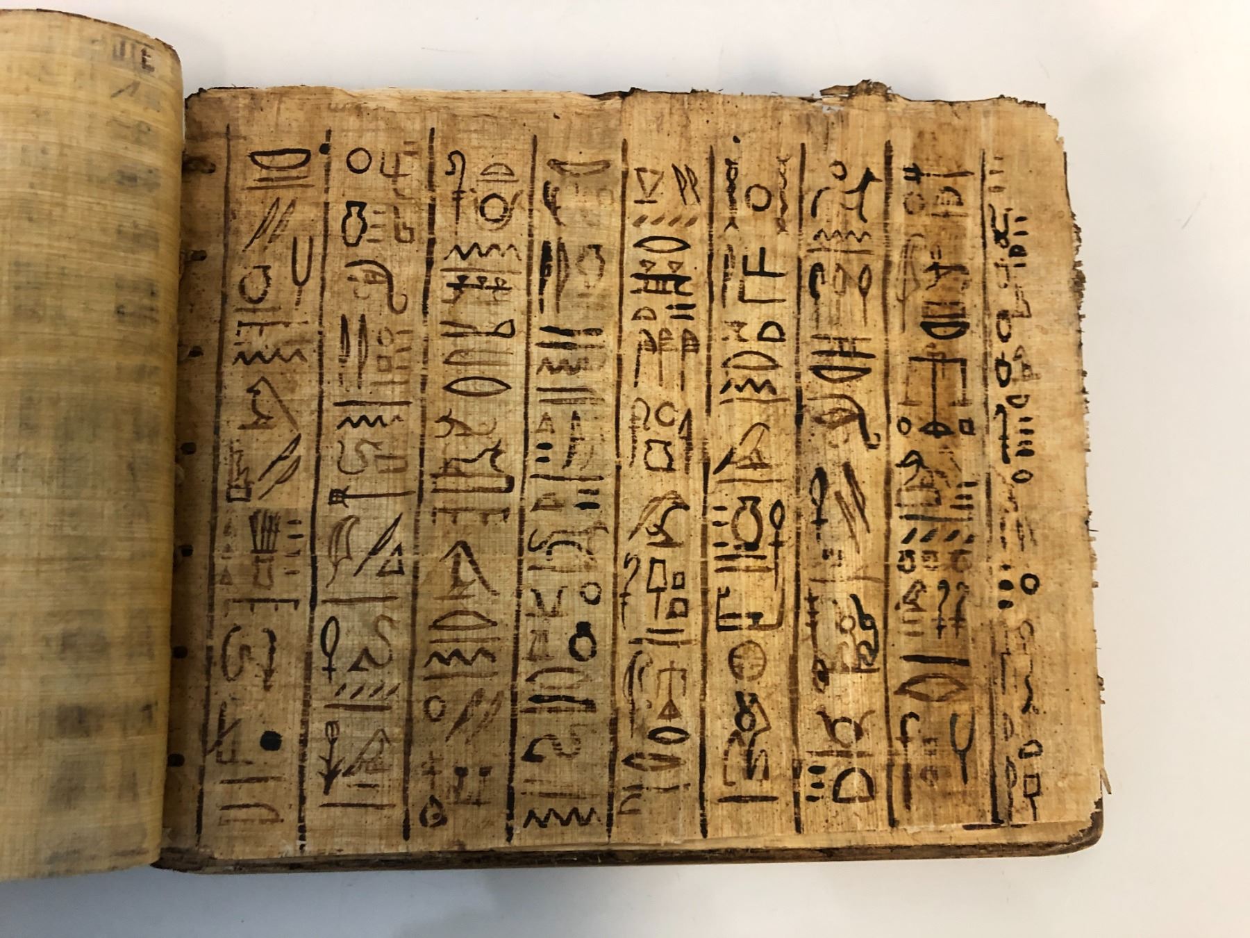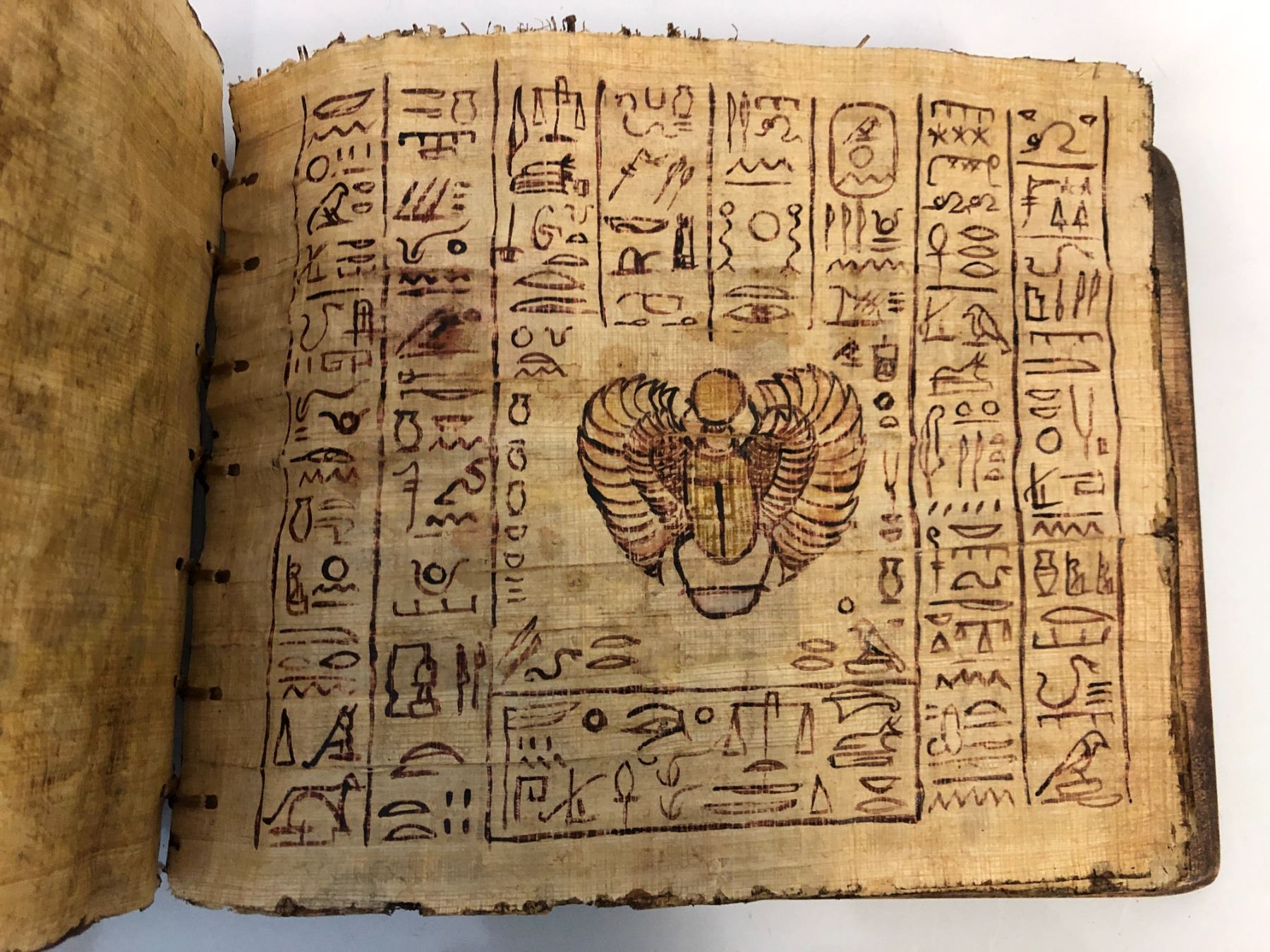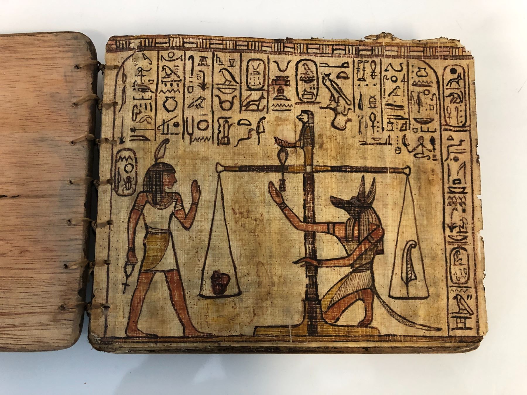 "Motherland: Fort Salem" - Egyptian motif wooden parchment book w/ hieroglyphics pages