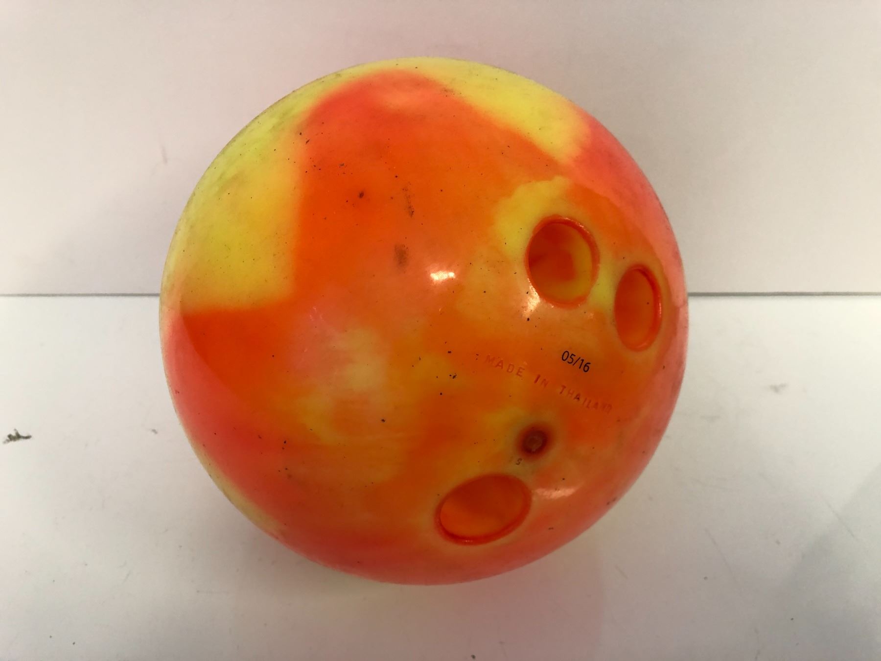 "Motherland: Fort Salem" - Fluorescent orange & yellow faux bowling ball
