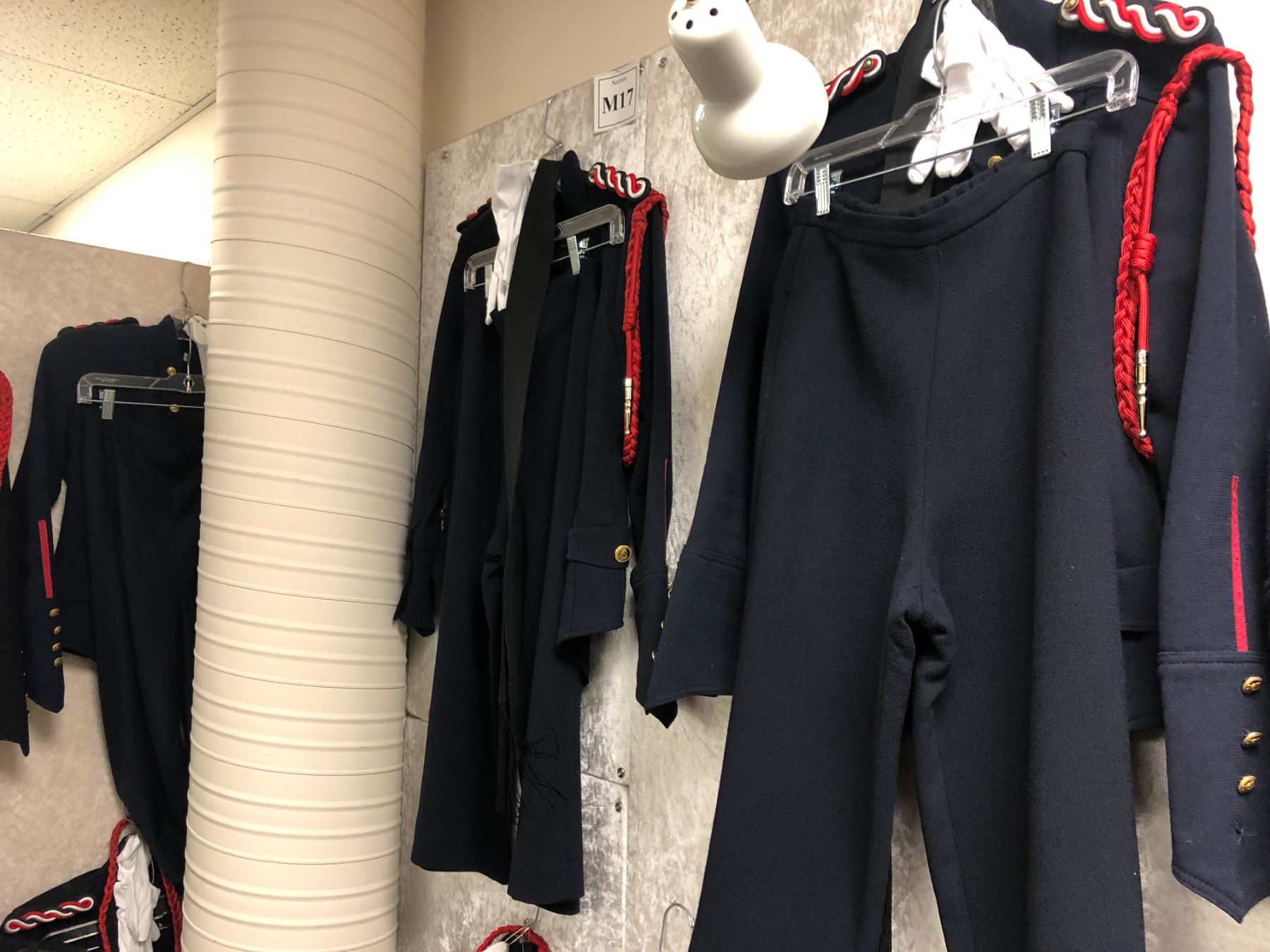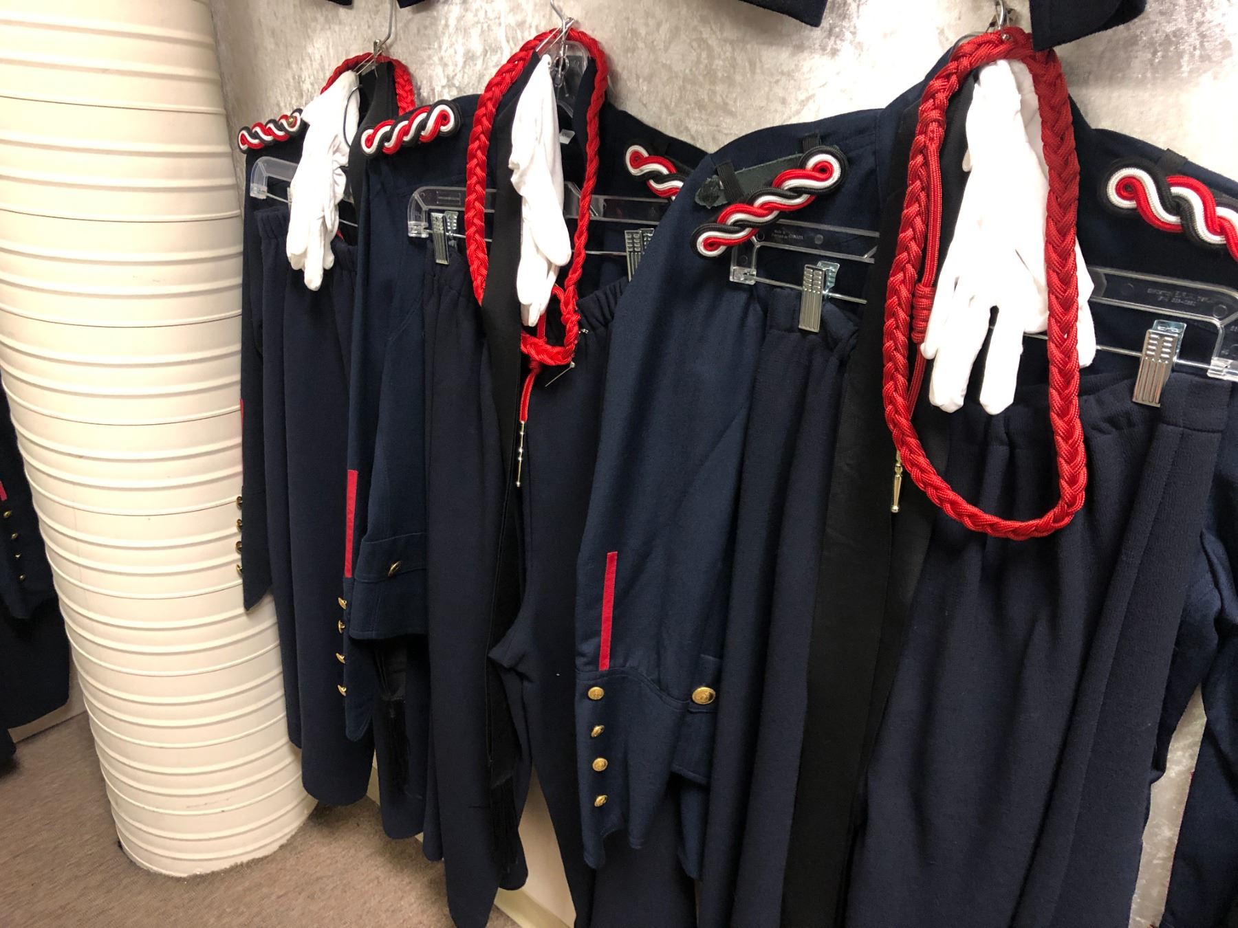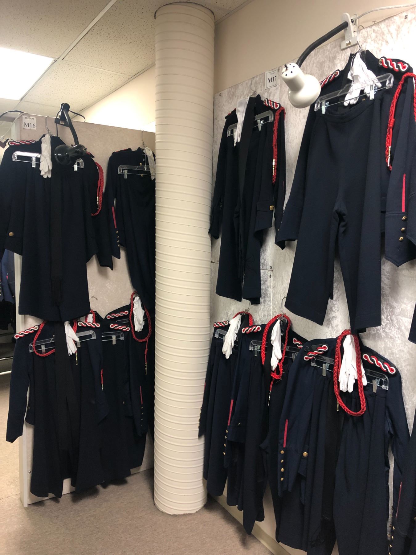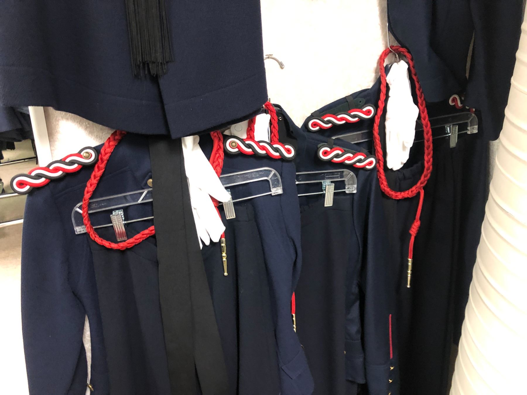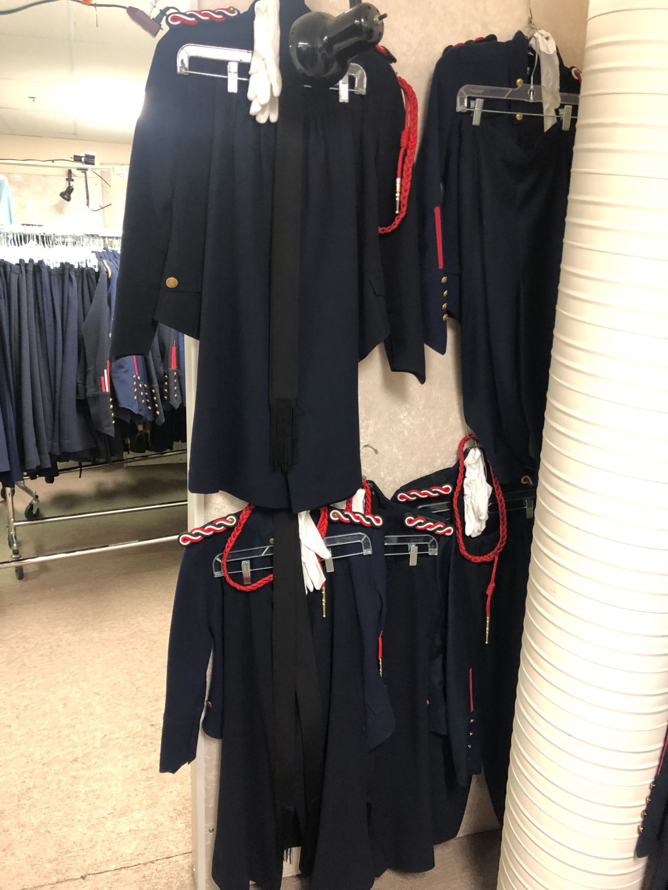 "Motherland: Fort Salem" - Group of 10 United States Army "Privates" Dress Uniforms 6pc sets - includes jacket/ trousers/ white gloves/ shoulder rank emblems/ French fourragère & sash w/ assorted witches merit pins (1 stripe on each sleeve)