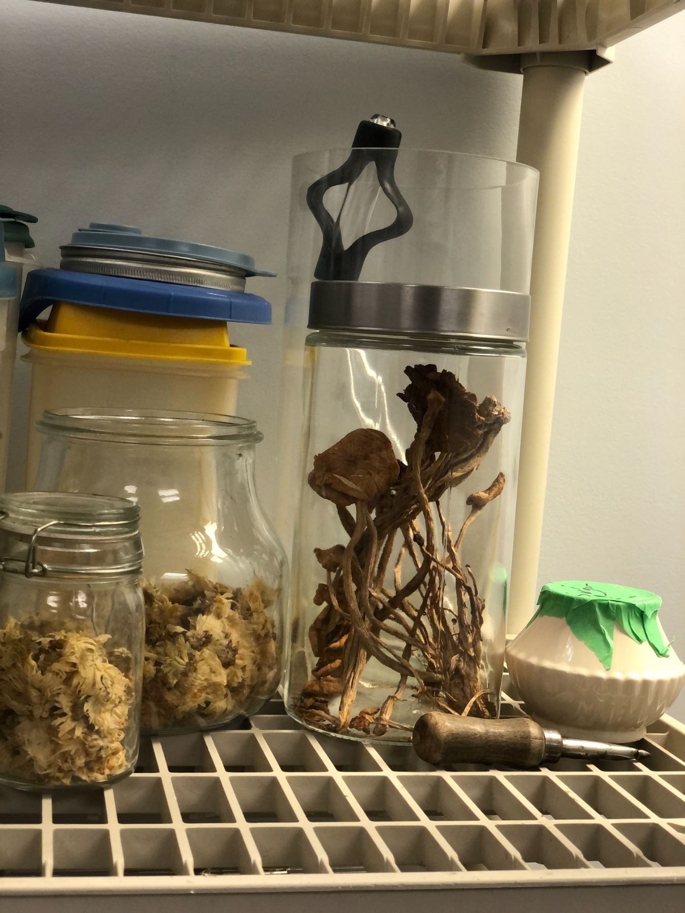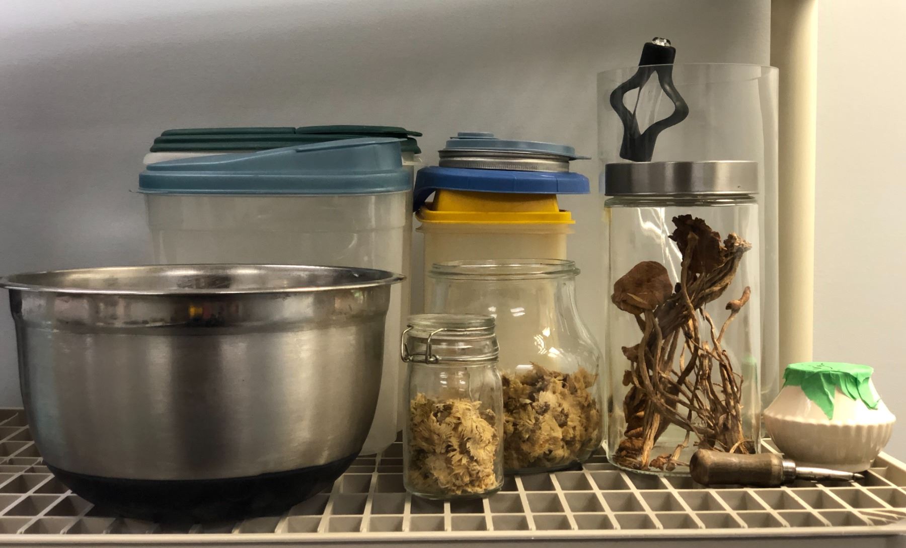 "Motherland: Fort Salem" Group of misc. items - Glass jars/ dried leaves/ metal bowl etc.