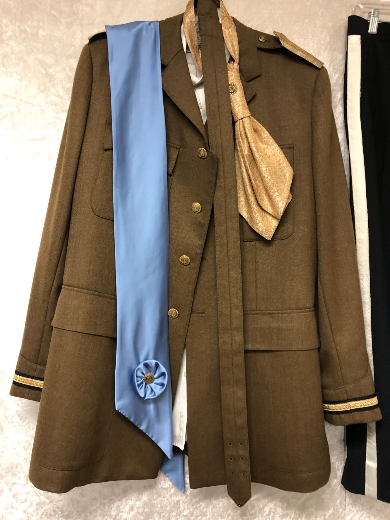 "Motherland: Fort Salem" - Hero "Multi 111. Claude" Formal Military Uniform 7pc set - includes jacket/shirt/pant/belt/shoulder emblems/tie w/pendant & blue sash