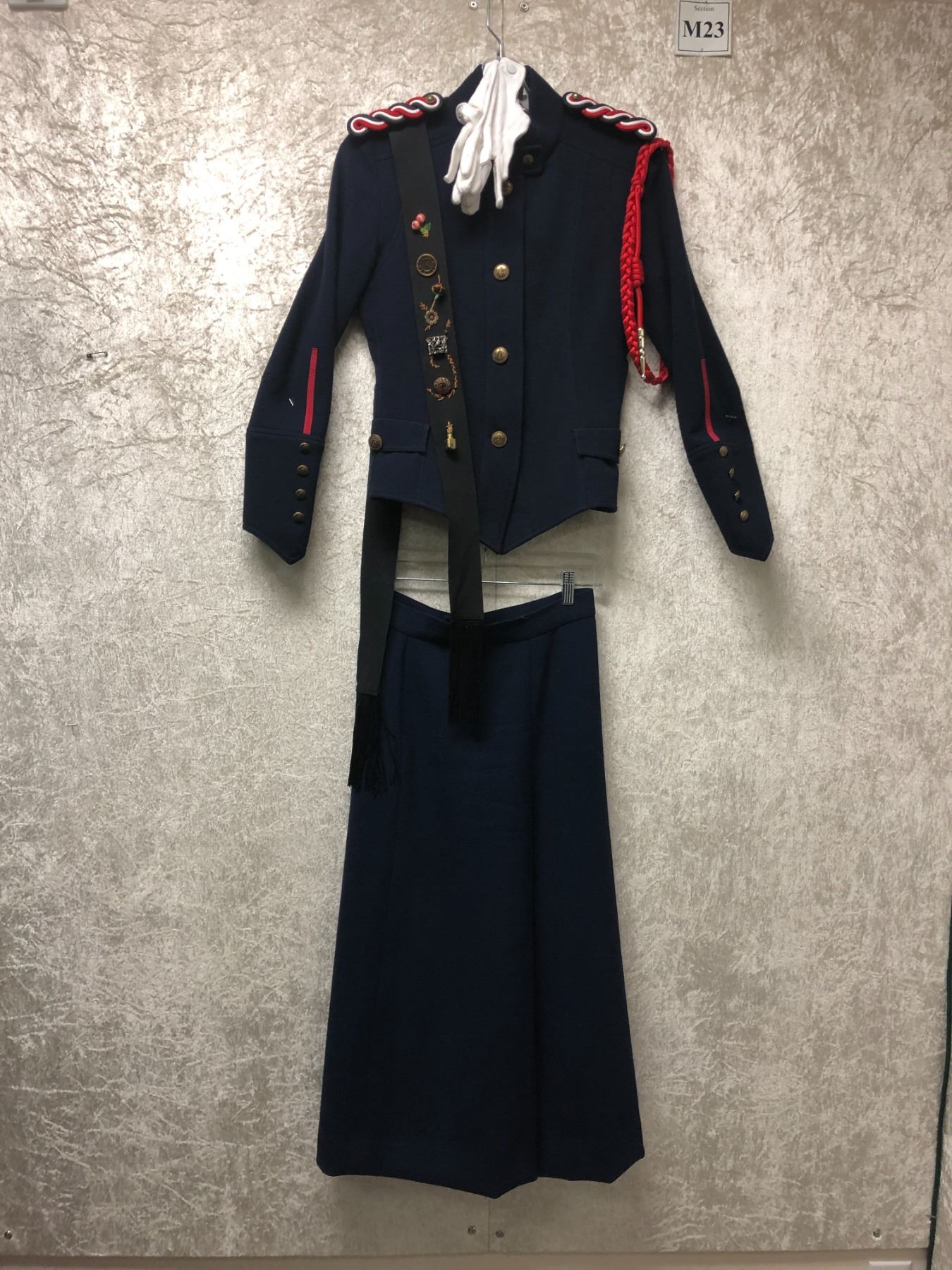 "Motherland: Fort Salem" - Hero "Tally" United States Army "Old Hero" Private Rank Uniform/ Pants are "New Hero" - 6pc set includes jacket/ trousers/ white gloves/ shoulder rank emblems/ French fourragère & sash w/ assorted witches merit pins (1 stripe on each sleeve)