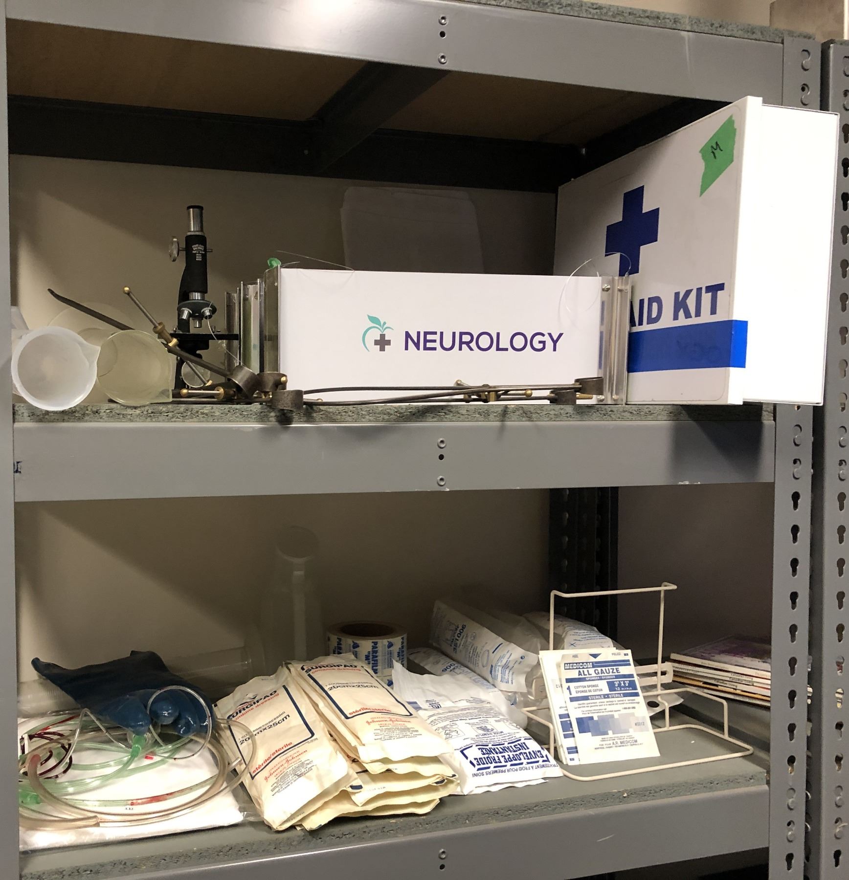 "Motherland Fort Salem" - Large group of assorted medical set dec items includes surgery pads/tools/microscope/signage etc.
