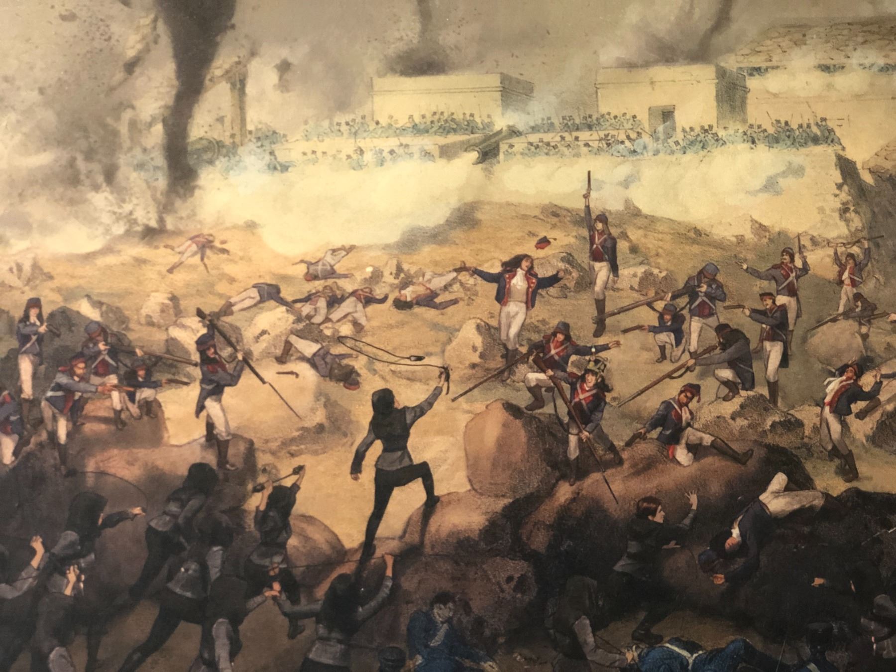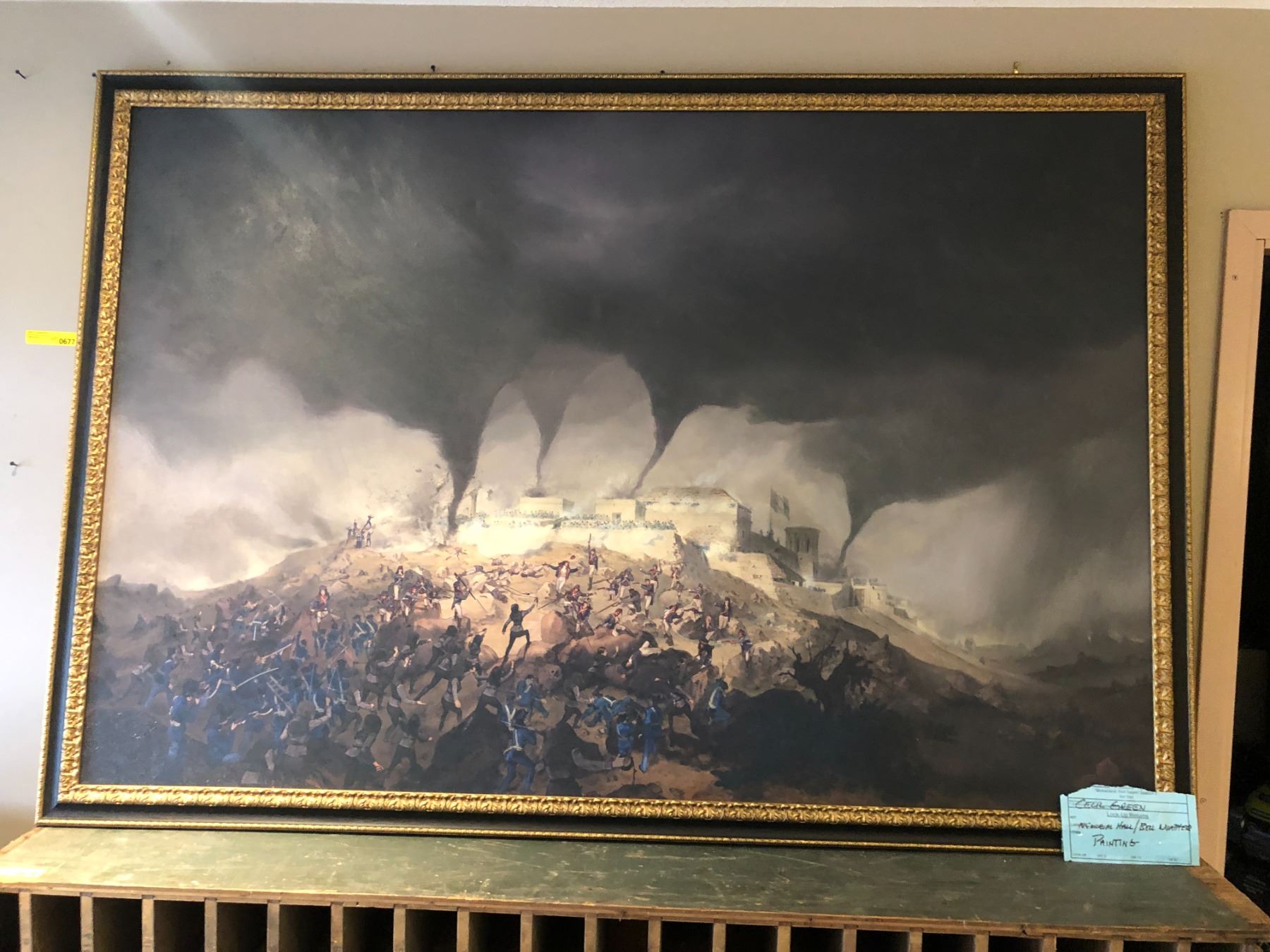 "Motherland Fort Salem" Season 2 Memorial Hall/Bell Weather - large framed original war scene painting (approx 77" x 52 1/2")