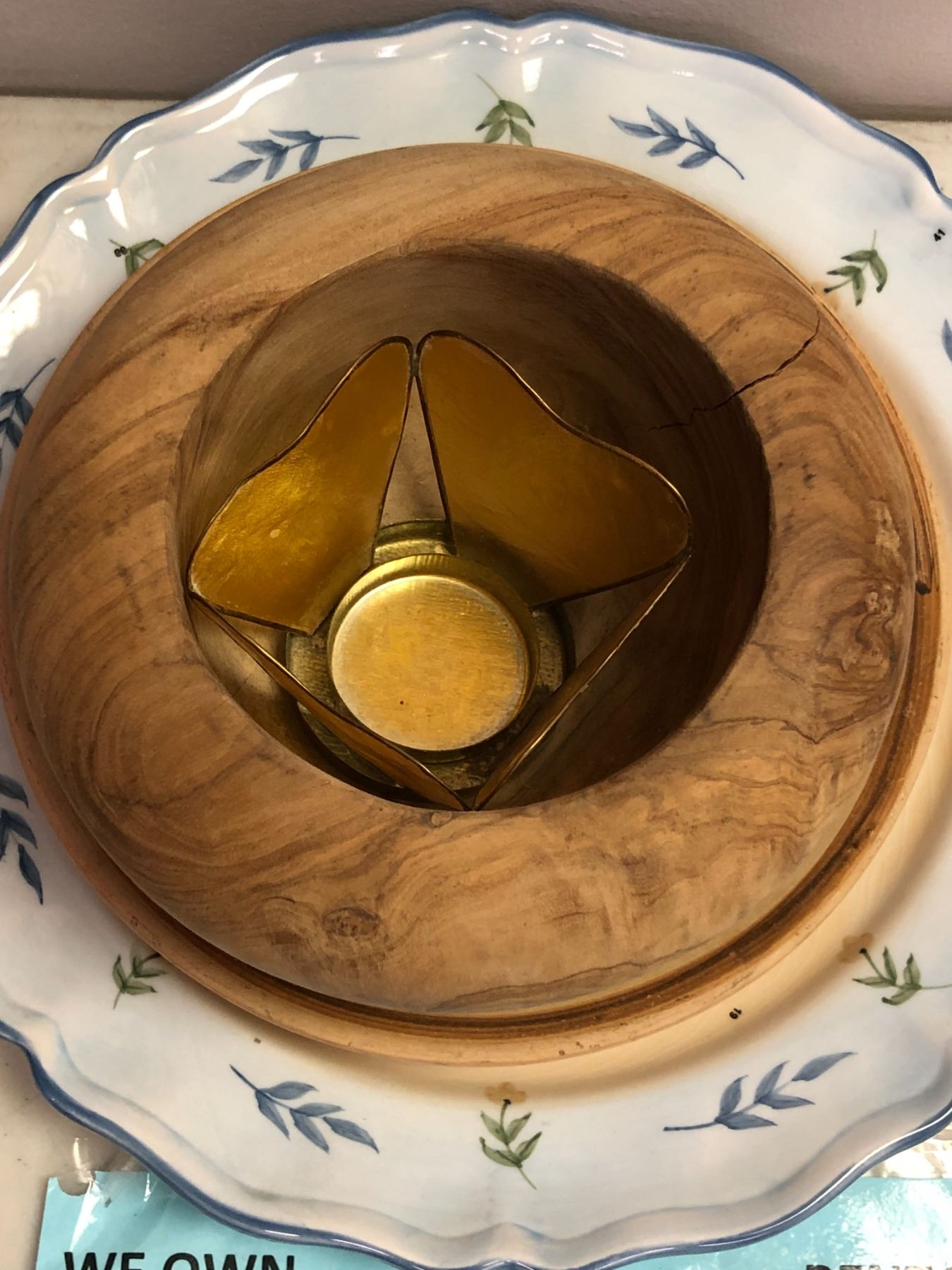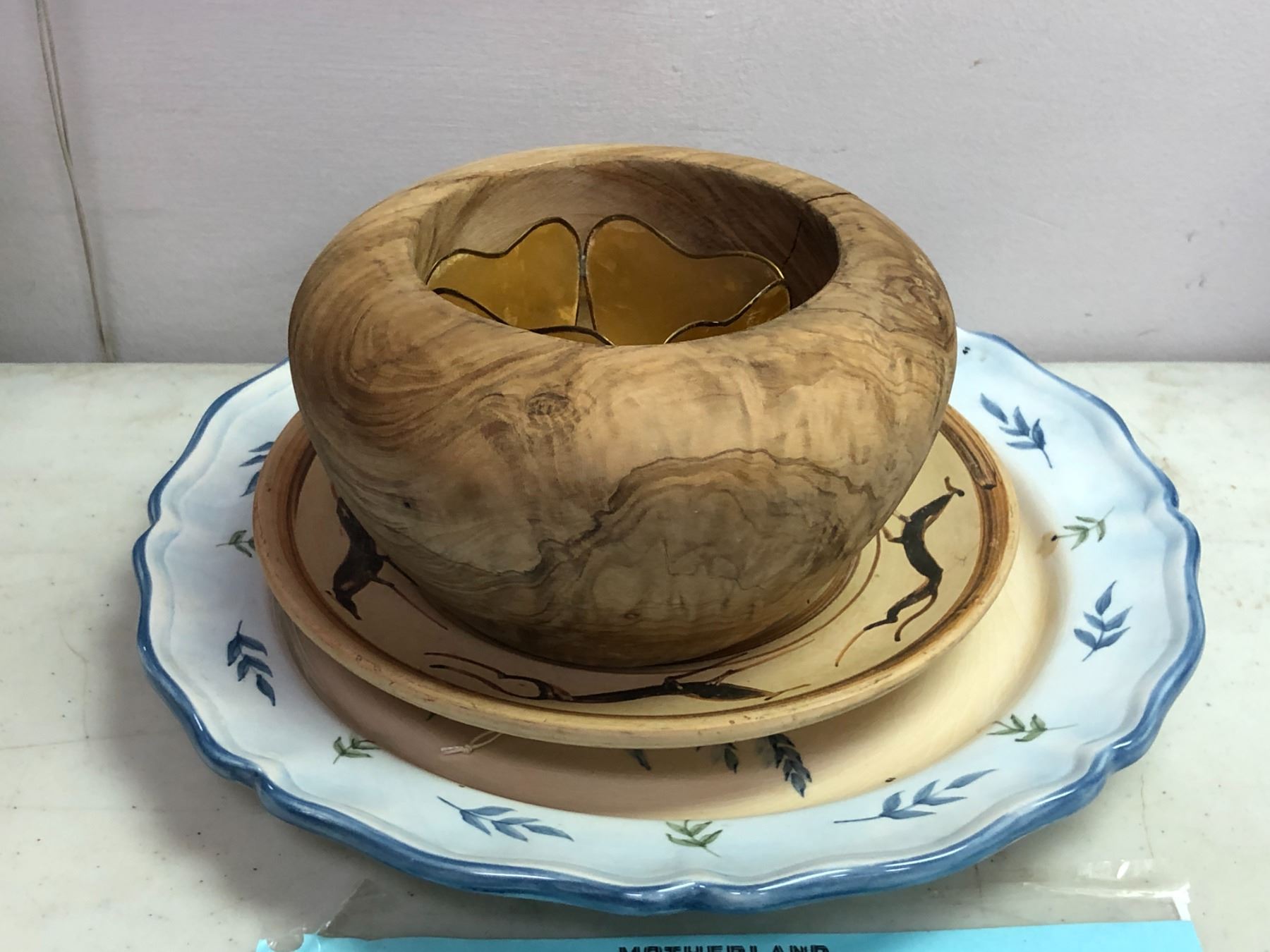 "Motherland: Fort Salem" Talley's Bedroom contents - Decorative plates/ wooden bowl/ candle holder