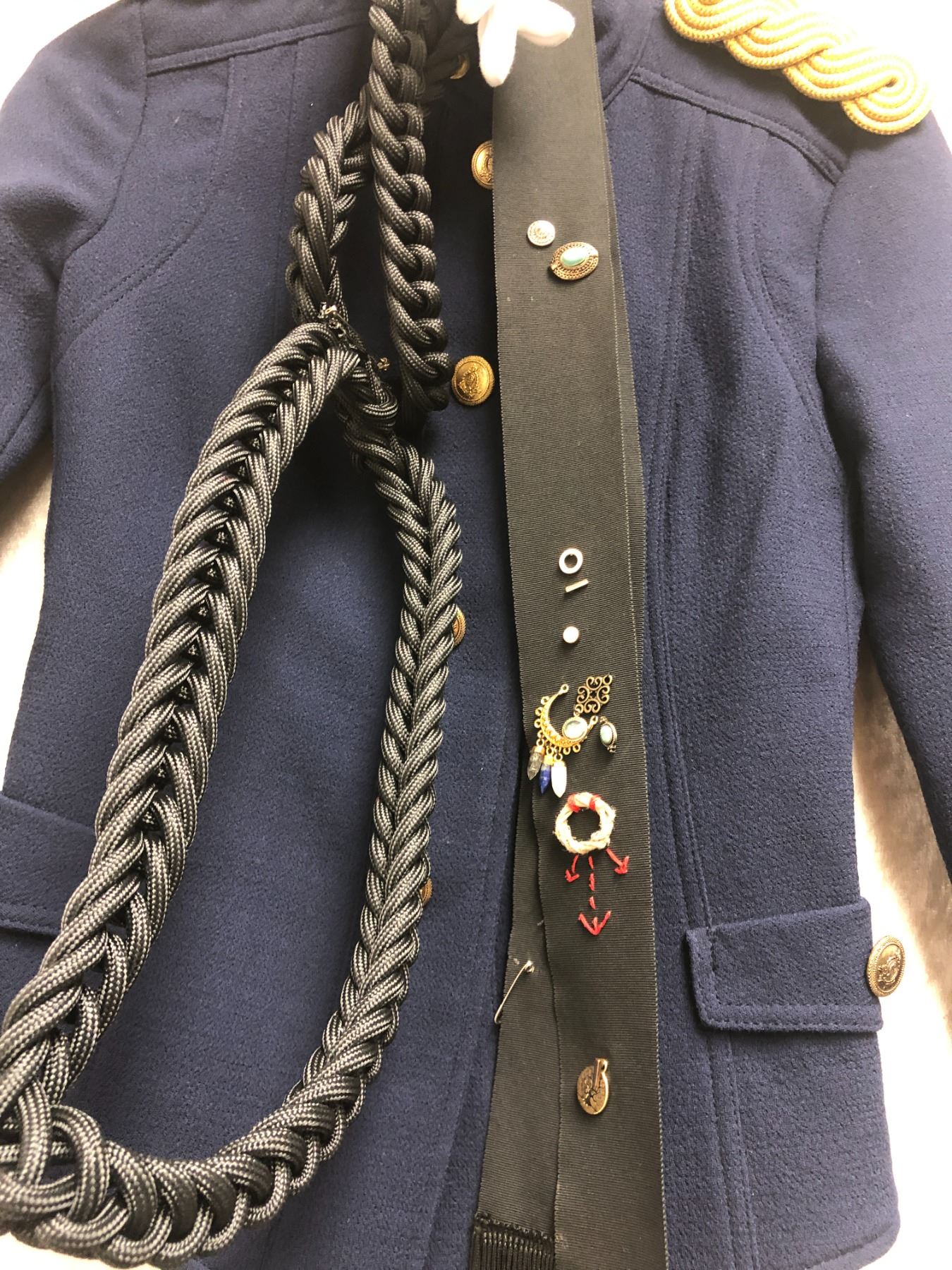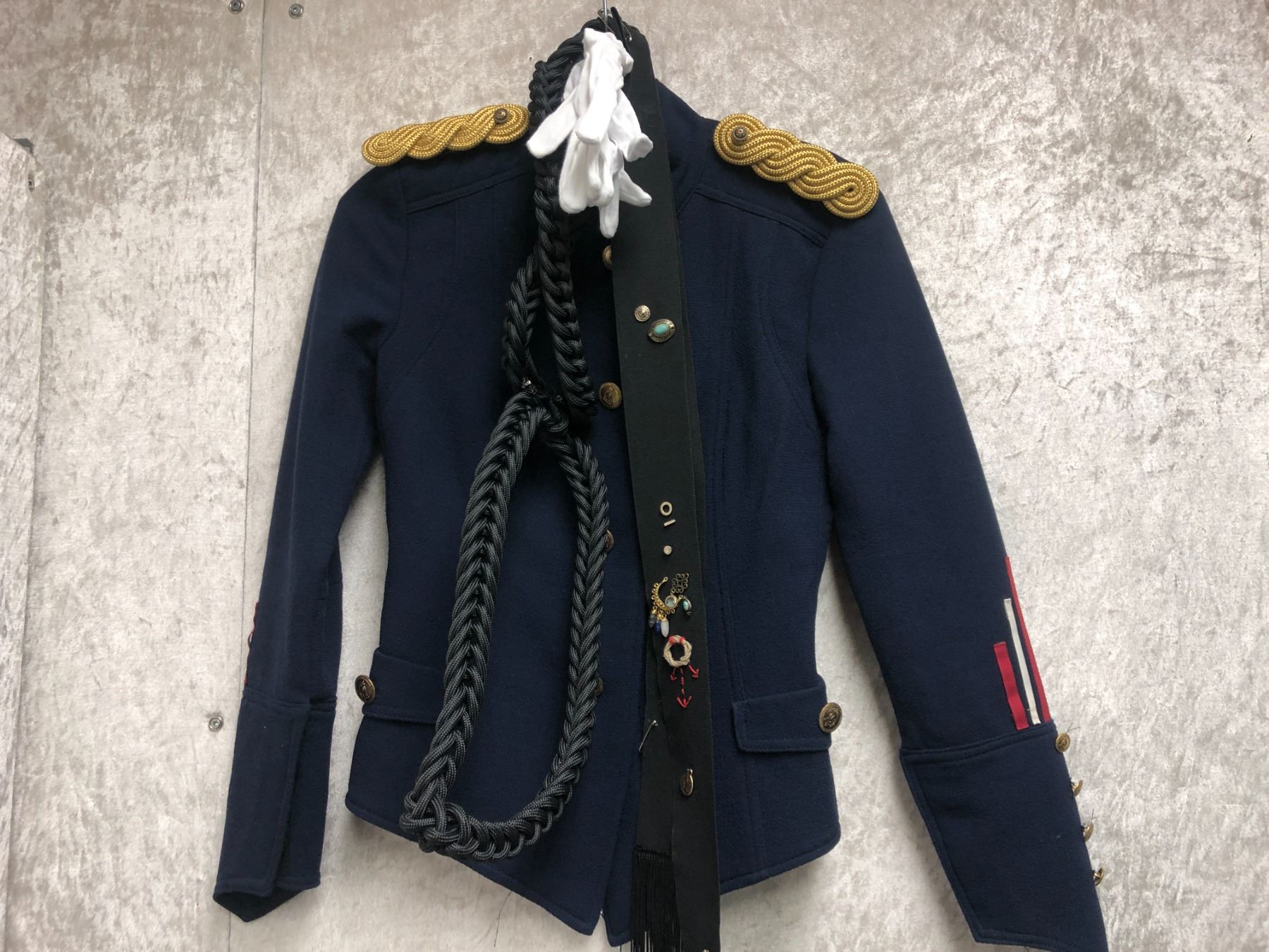 "Motherland: Fort Salem" - United States Army "General's" Dress Uniform 6pc set - includes jacket/ trousers/ white gloves/ shoulder rank emblems/ French fourragère & sash w/ assorted witches merit pins (5 stripes on sleeve)