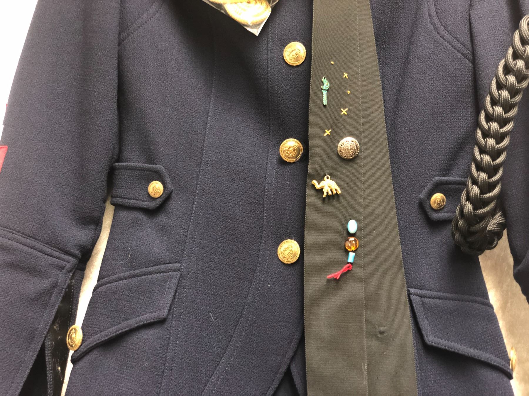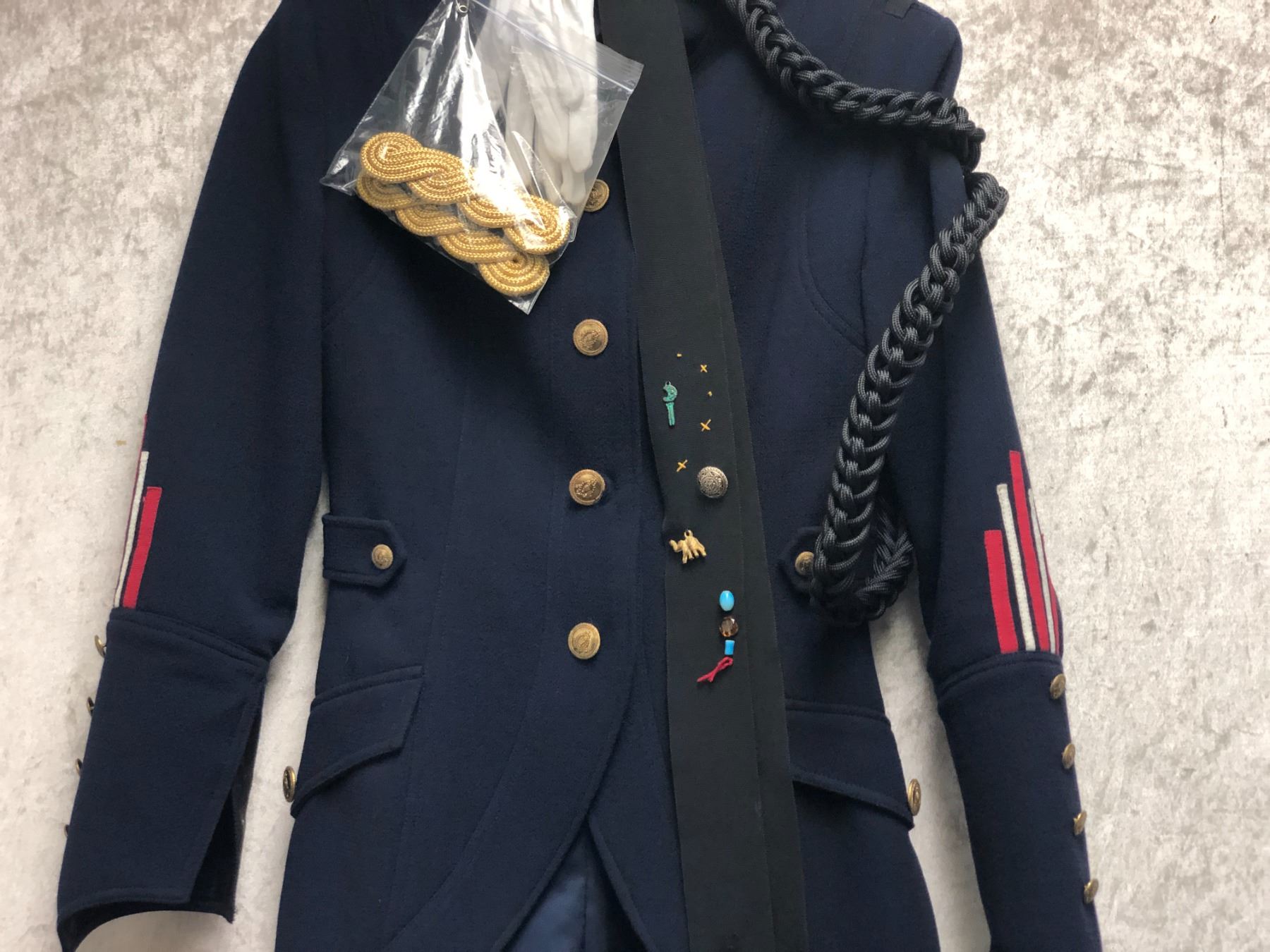 "Motherland: Fort Salem" - United States Army "General's" Dress Uniform 6pc set - includes jacket/ trousers/ white gloves/ shoulder rank emblems/ French fourragère & sash w/ assorted witches merit pins (5 stripes on sleeve)