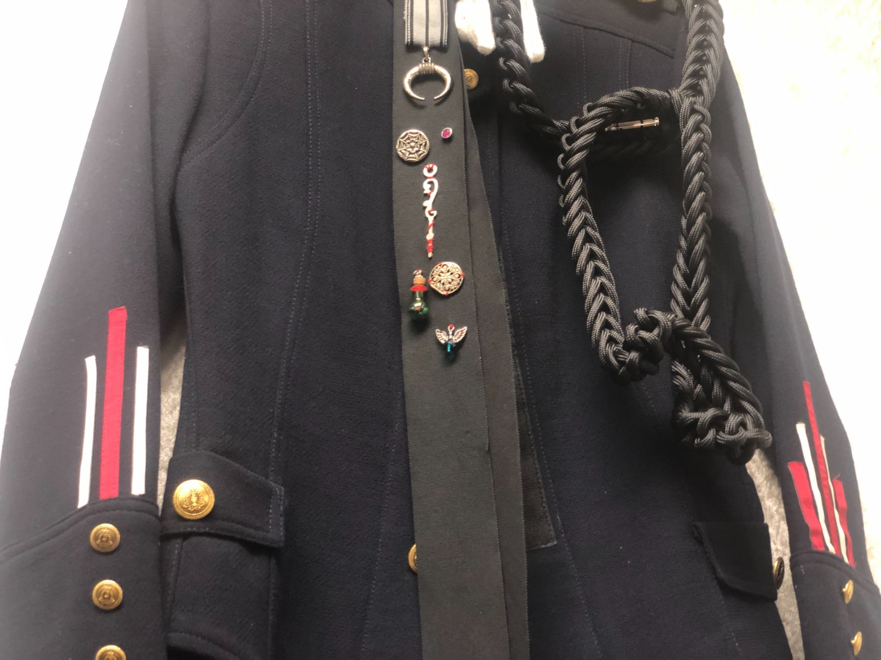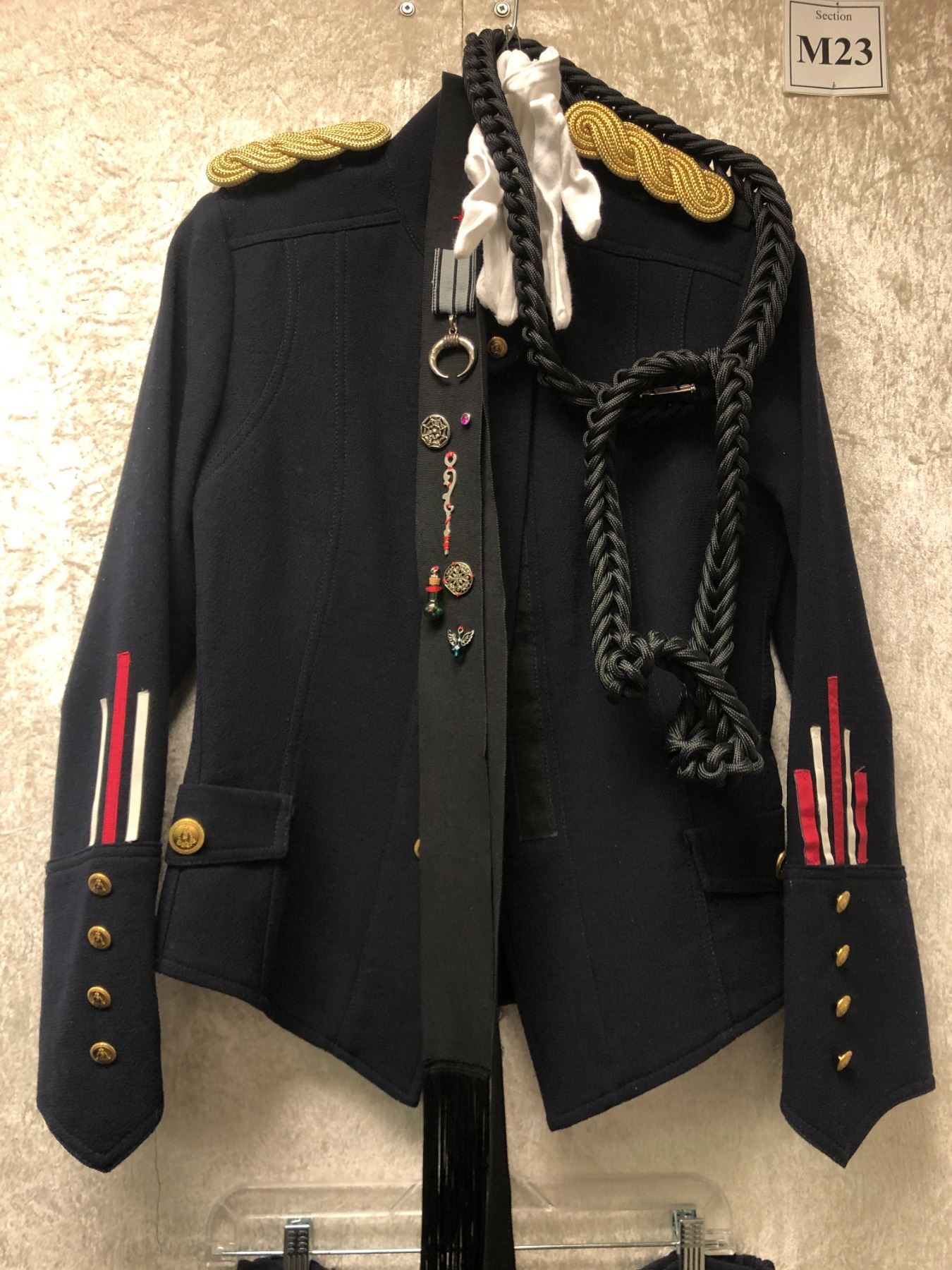 "Motherland: Fort Salem" - United States Army "General's" Dress Uniform 6pc set - includes jacket/ trousers/ white gloves/ shoulder rank emblems/ French fourragère & sash w/ assorted witches merit pins (5 stripes on one sleeve, 3 stripes on other sleeve)