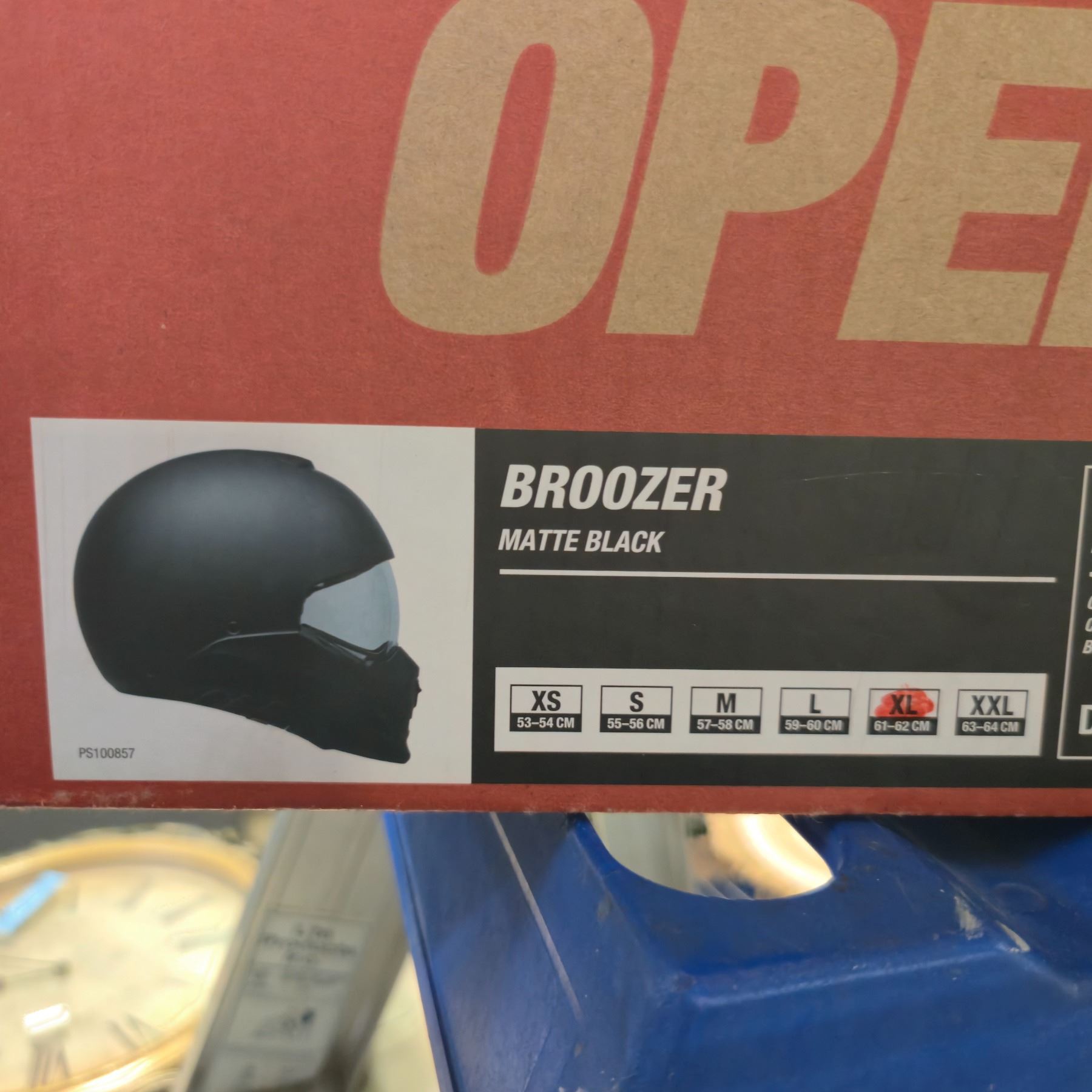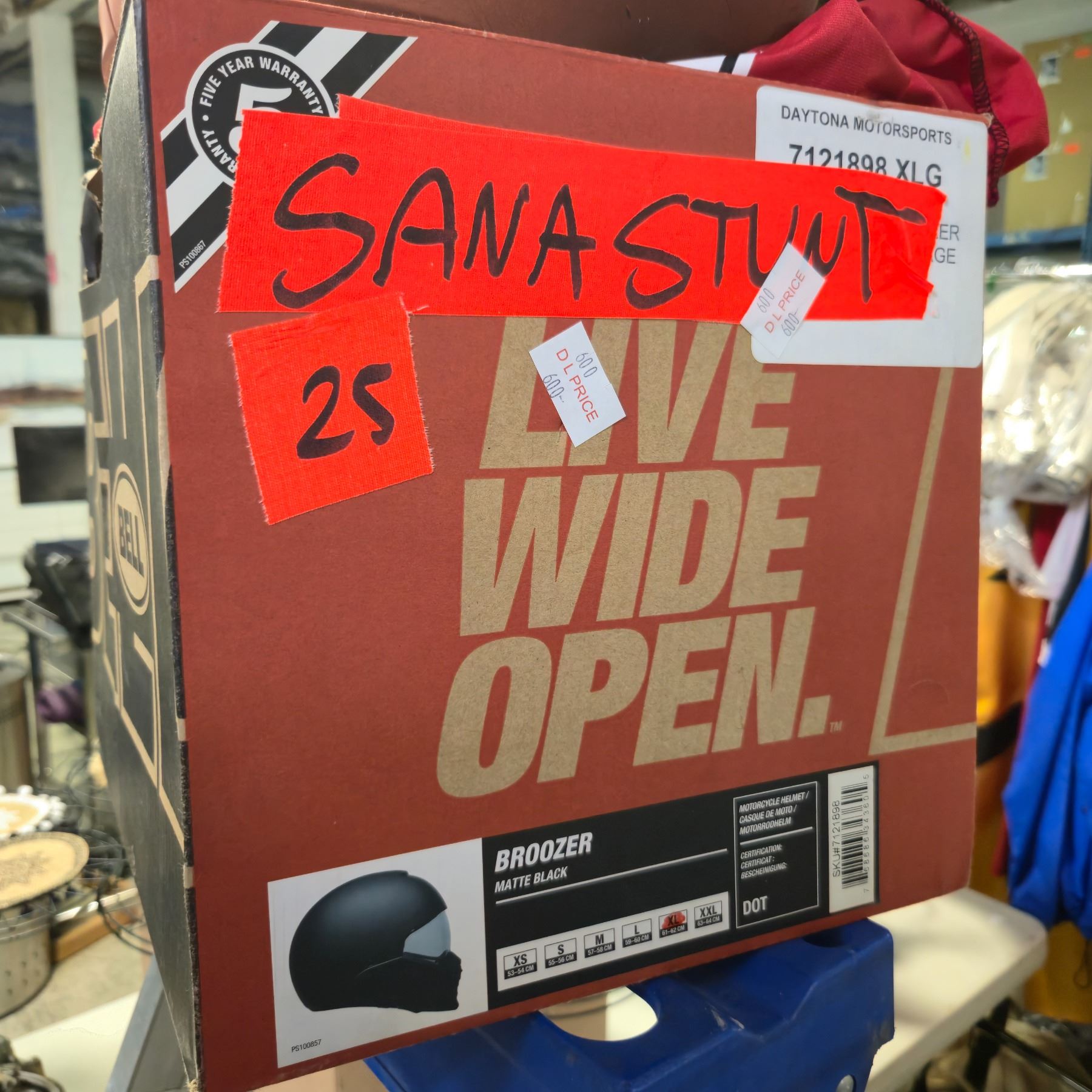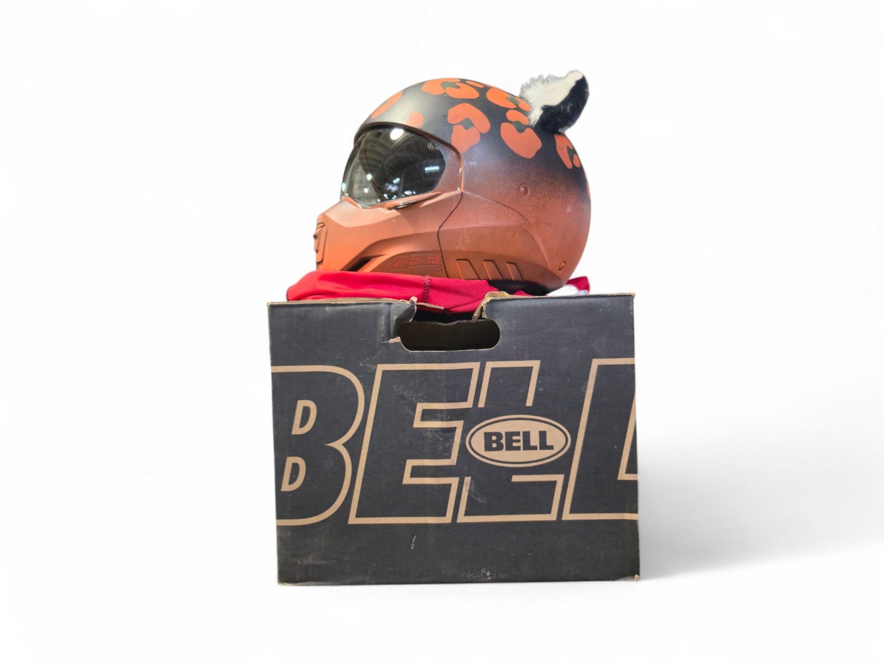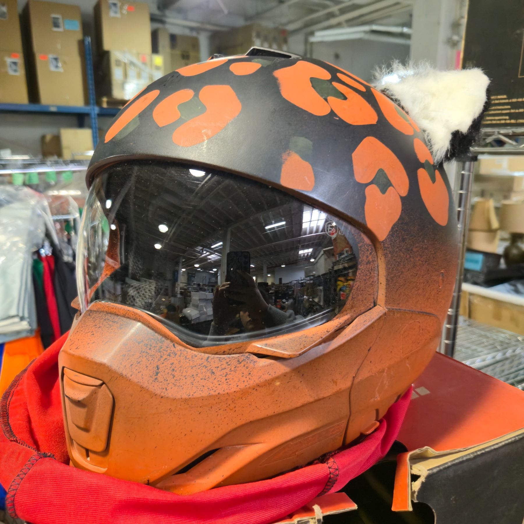 Motorcycle Helmet Hand Painted "Broozer" Black & Orange, Size XL - Used for Movie Set Dec