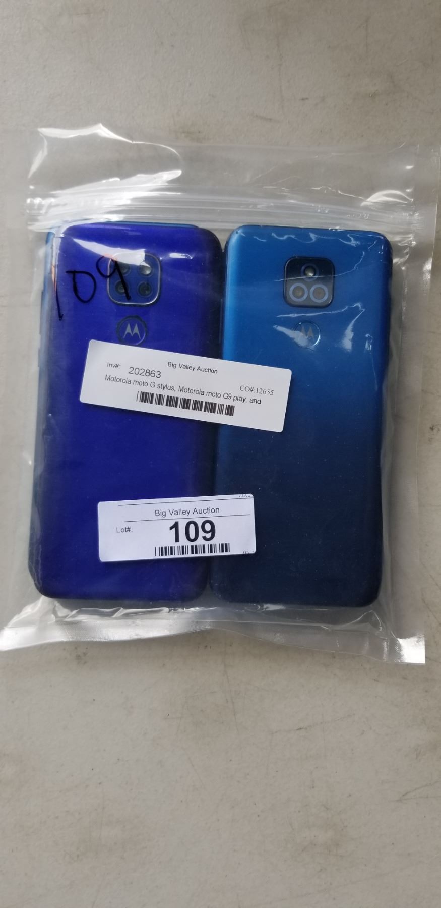 Motorola moto G stylus, Motorola moto G9 play, and 2 Motorola moto G play phones