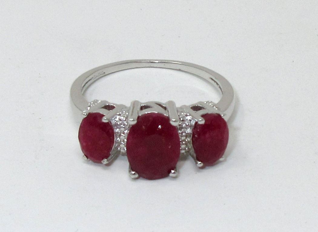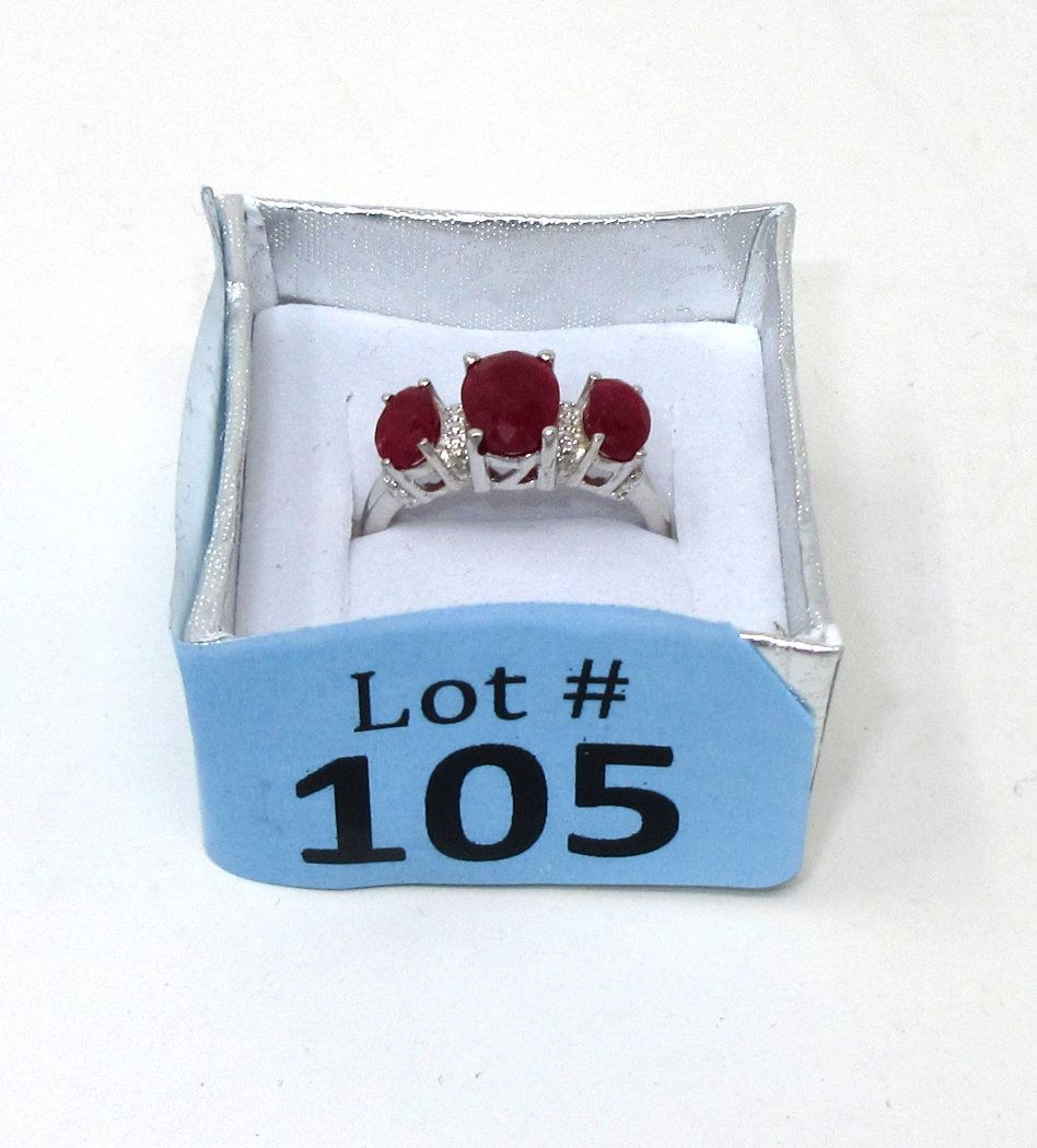 Sterling silver. 3 Oval rubies & 2 diamonds. Includes $400 certificate.