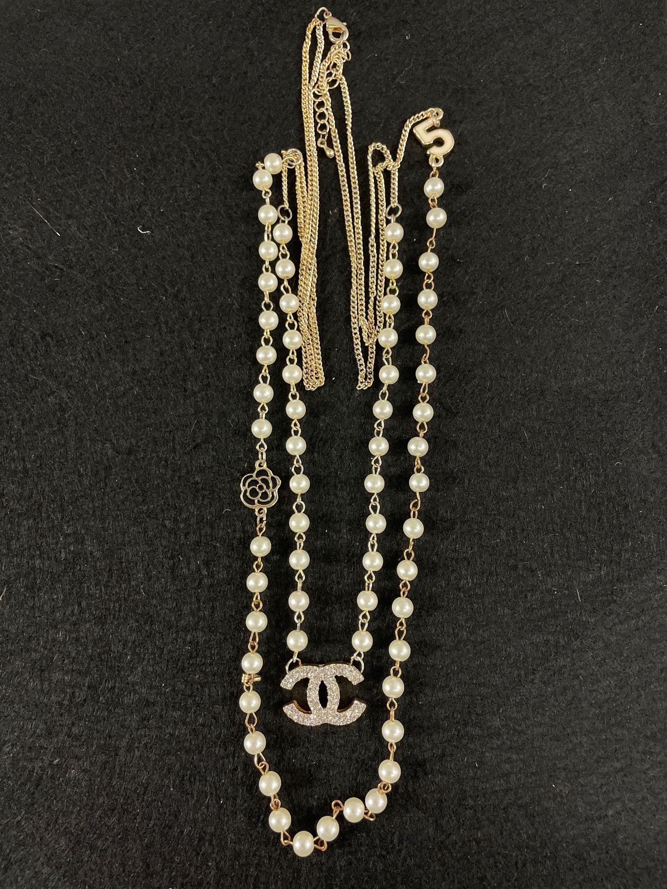 Multistrand Pearls with Rhinestones Chanel 5 Necklace