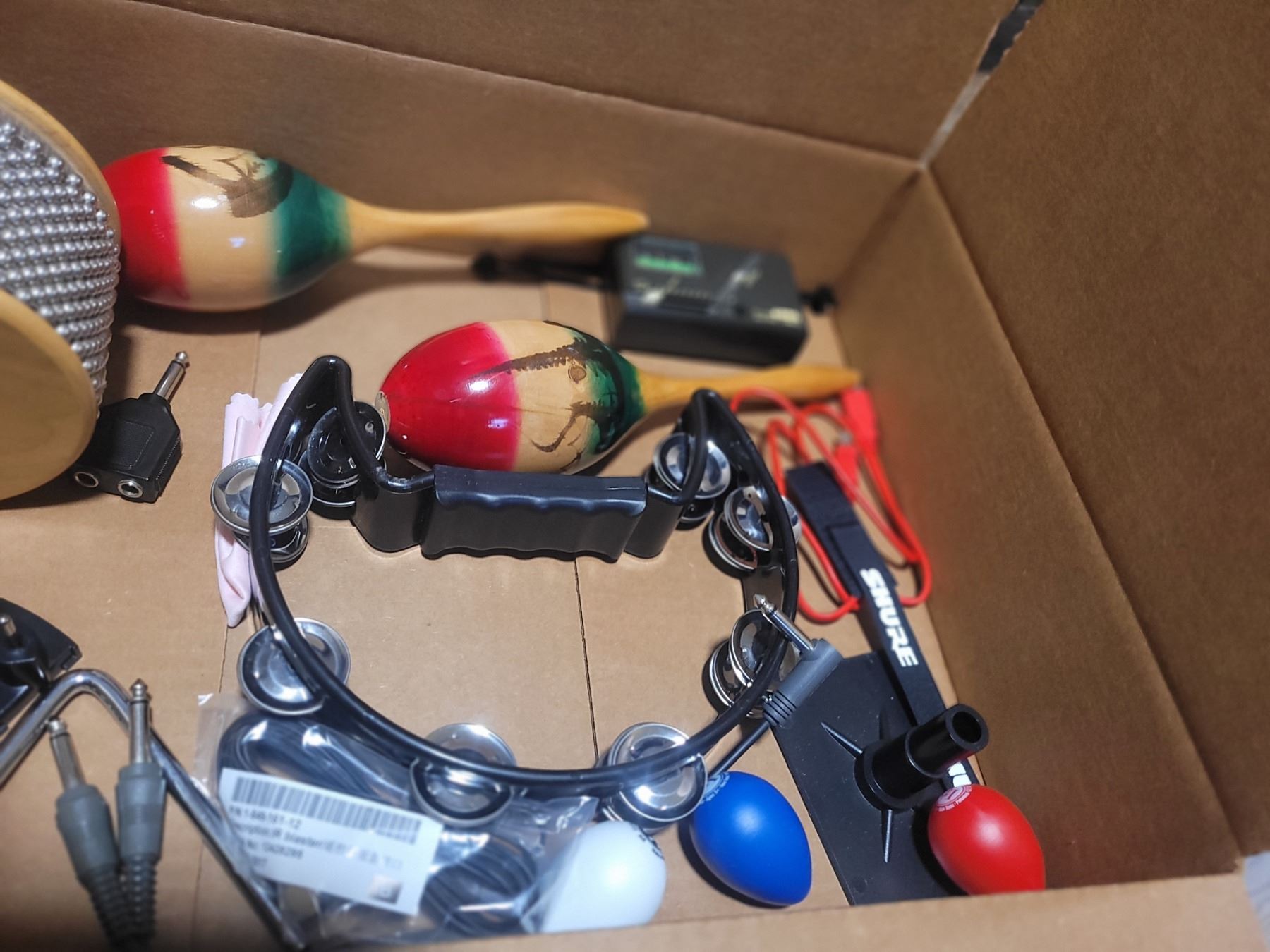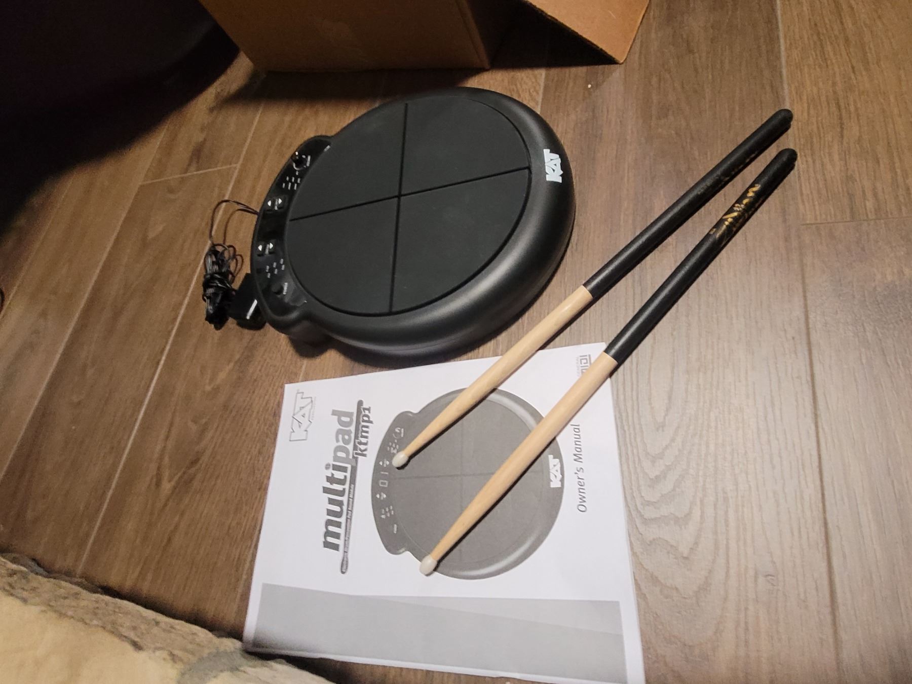 Mat electronic drum/percussion pad, Afuche Cabasa, tambourine, maracas, more. Pick up 9-10.