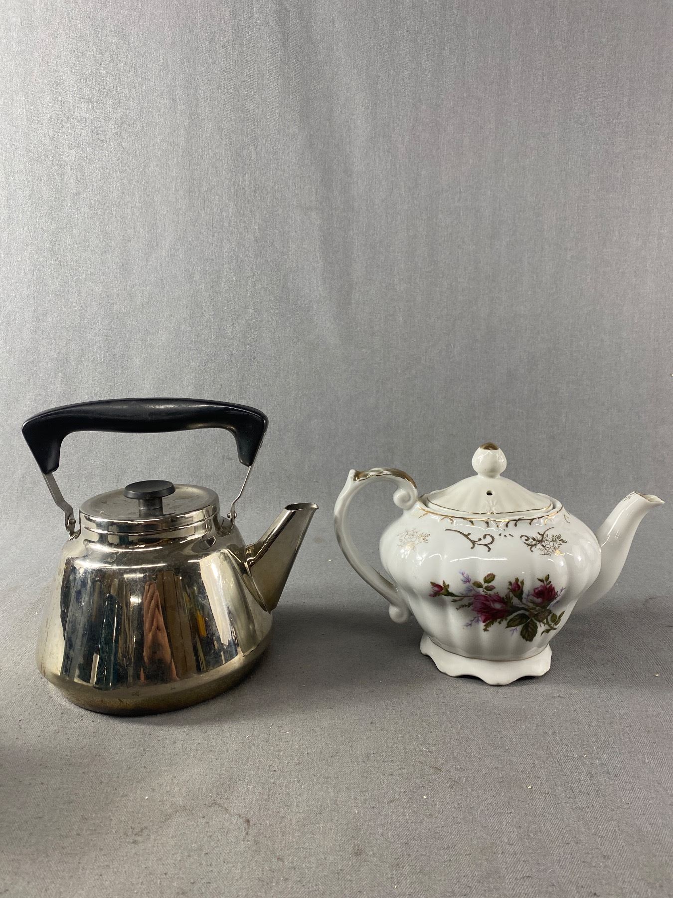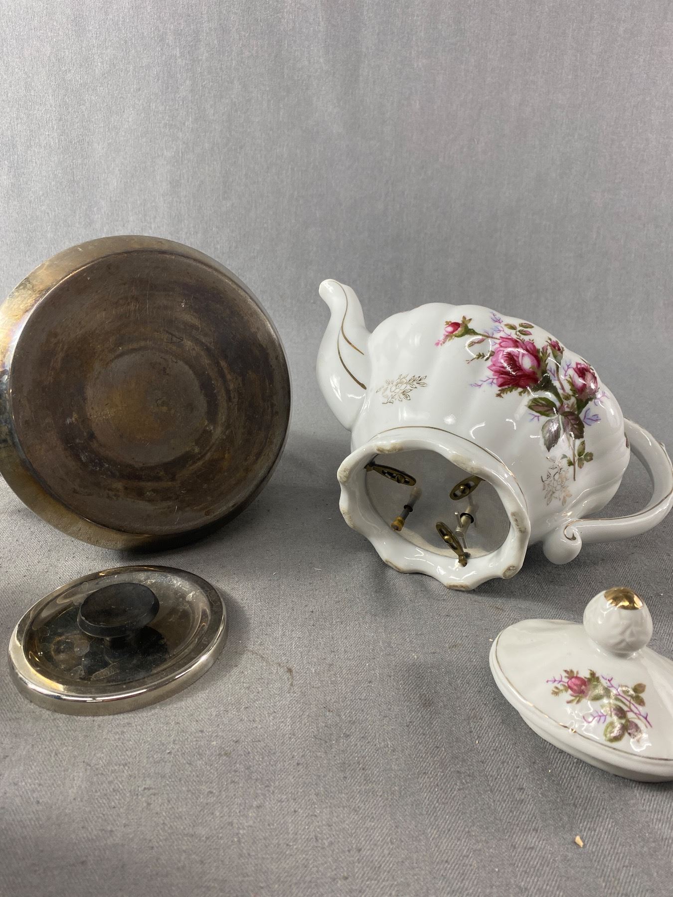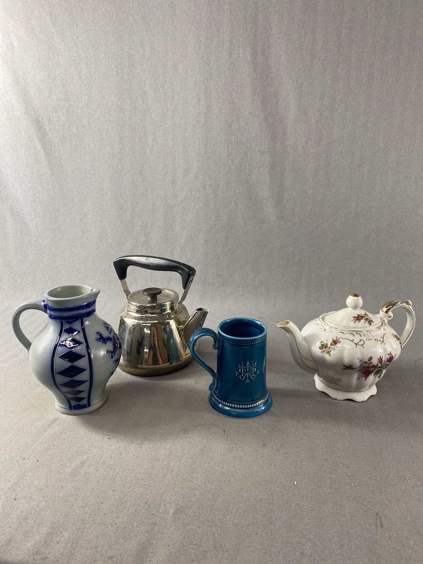 Musical Life Size Tea Pot, Marked 7.5" Pitcher, Prinknash Mug & Metal Tea Pot