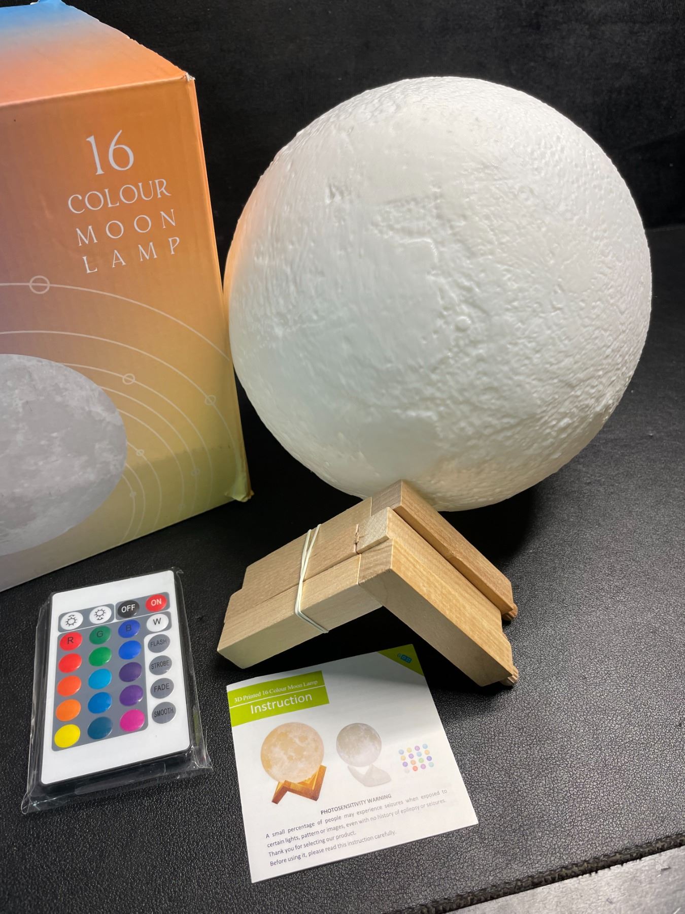 - Moon Lamp 16 Colours, 3D Printed – 7.1' Lunar Light with 148 Modes, Remote & Touch Control, USB Rechargeable – Gift for Women, Kids, Mum – Christmas, Birthday, Bedroom, Home Décor, Wooden Stand