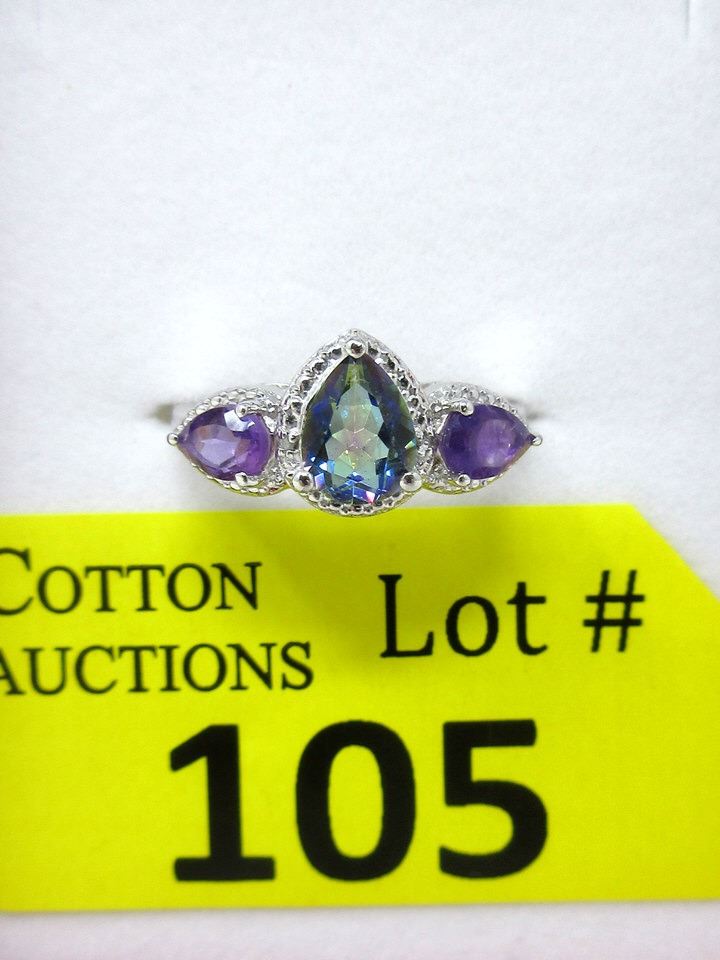 Pear cut topaz & amethyst, with 2 side diamonds set in sterling silver. Includes $310 certificate.