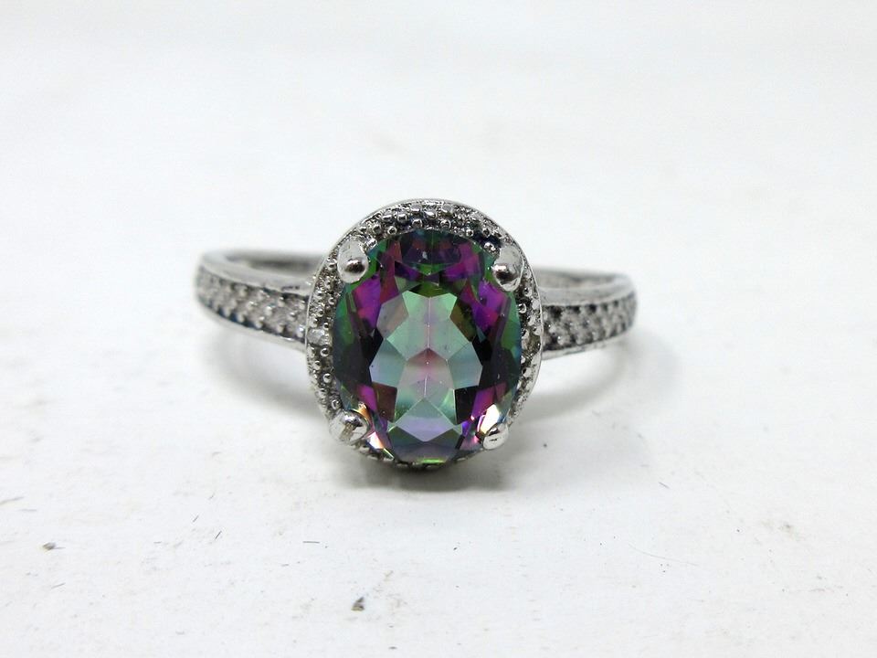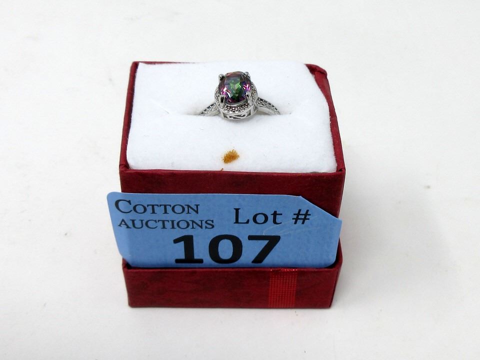 2.5 CT, Oval cut topaz with 2 diamonds, set in sterling silver. Includes $275 certificate.