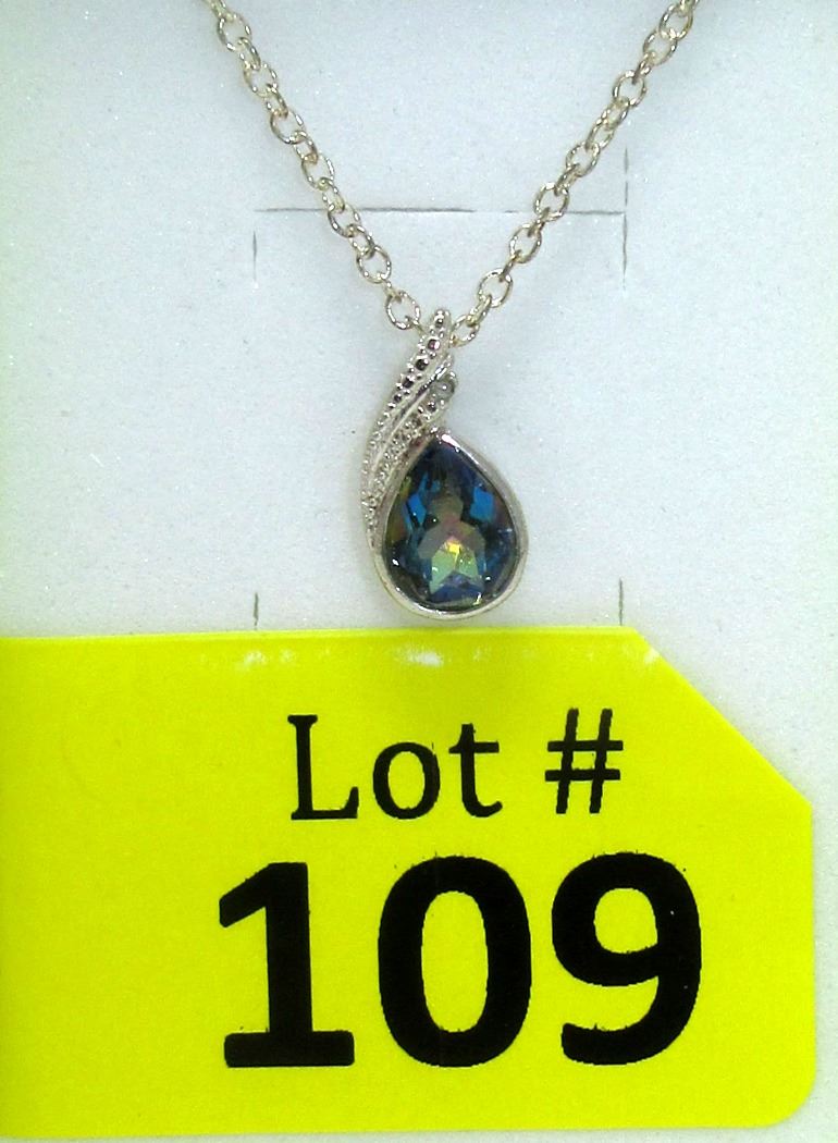 Bezel set. Ocean blue colour. Includes chain & $225 certificate.