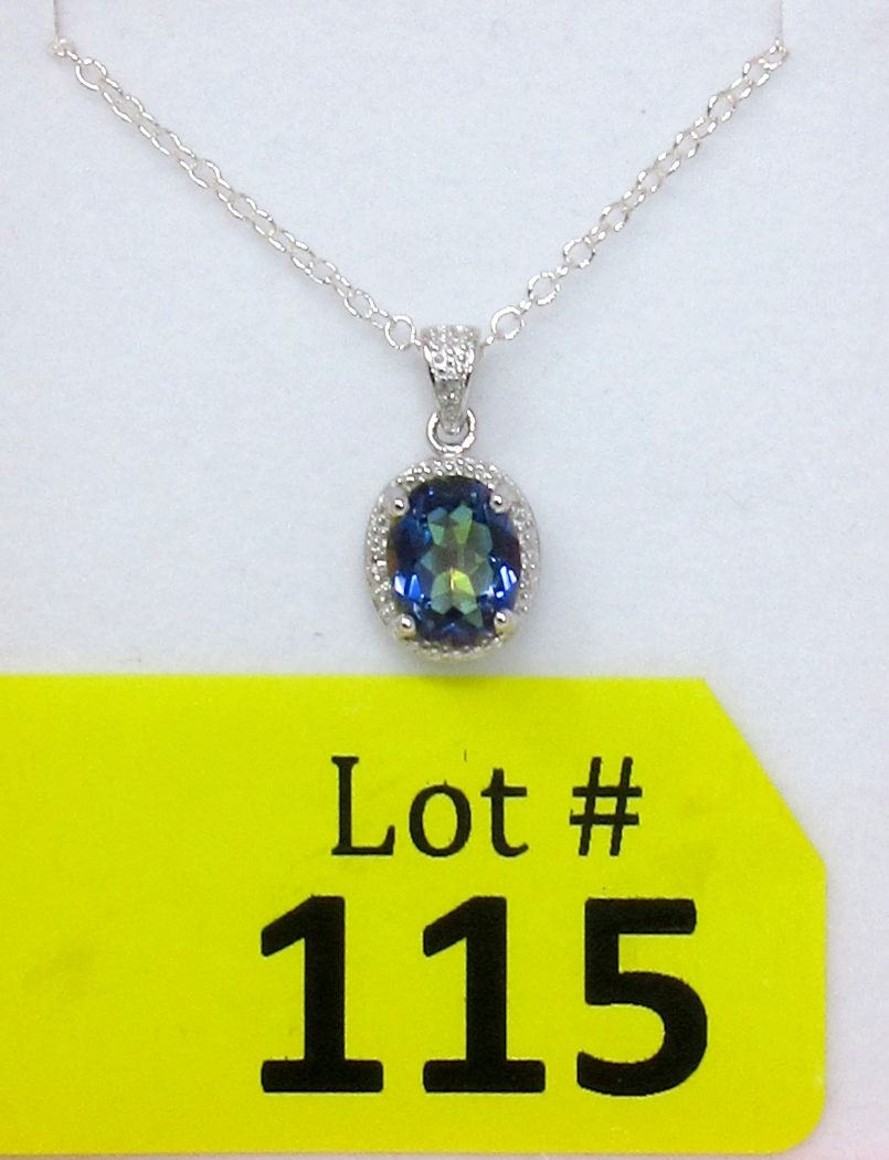 1.5 CT, Oval cut, ocean blue mystic topaz. Includes chain. Retail value $260.