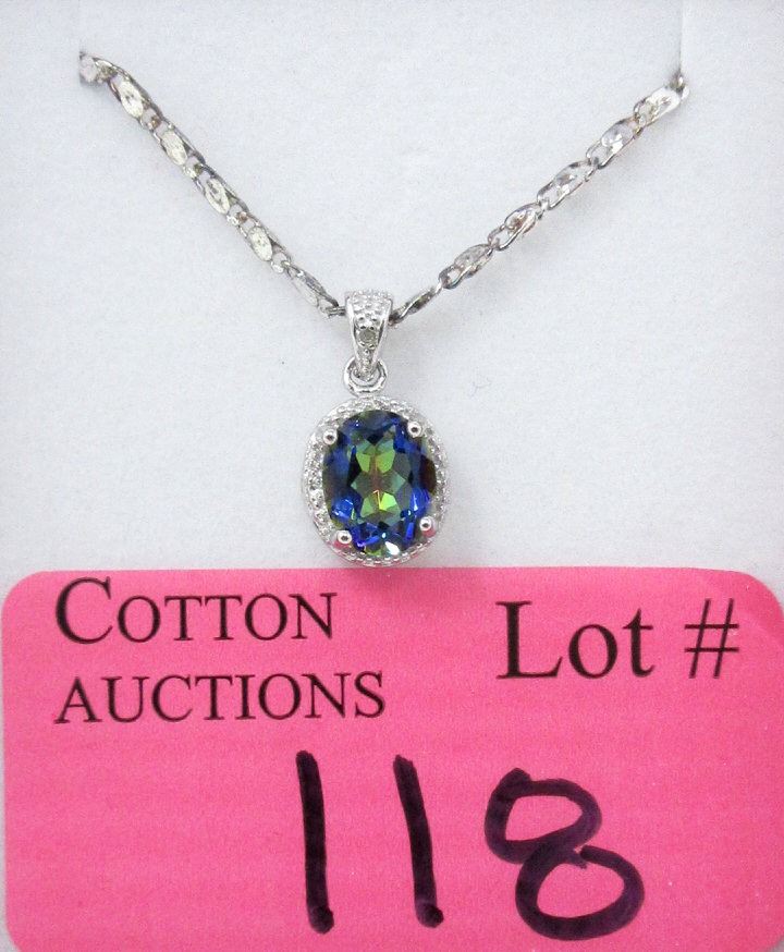 Oval cut, ocean blue topaz. Includes chain. Retail value $260.