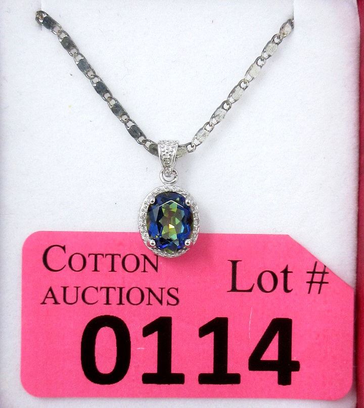 Oval cut, ocean blue topaz. Includes chain. Retail value $275.