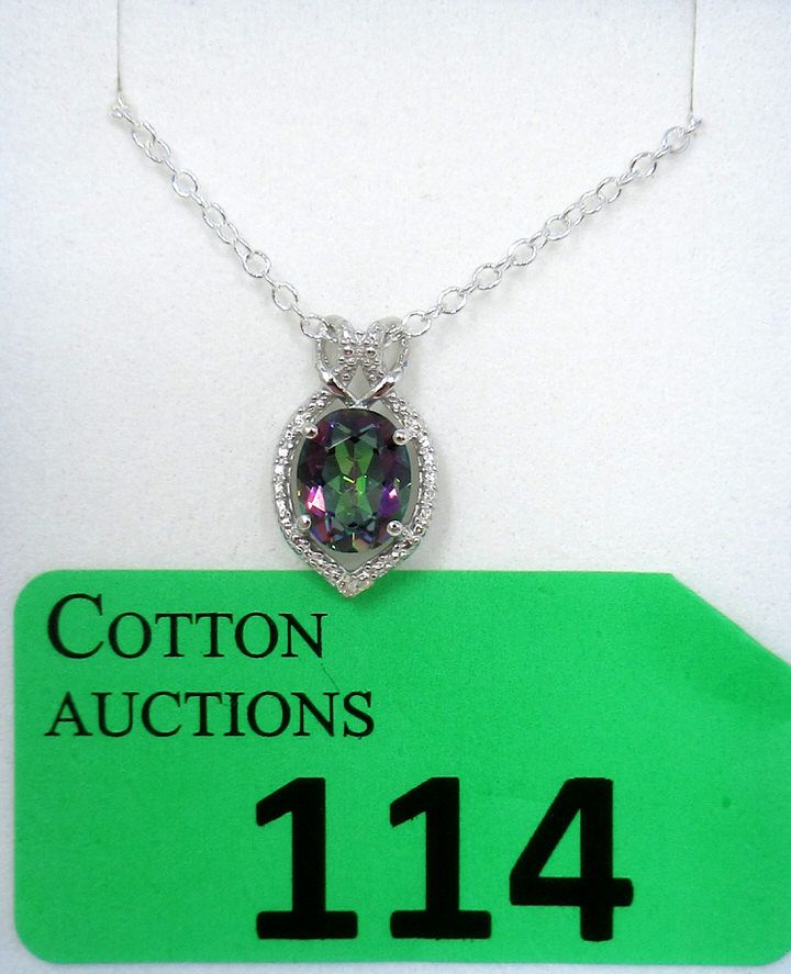 Oval cut, lively pink, purple & green topaz. Includes a chain. Retail value $240.