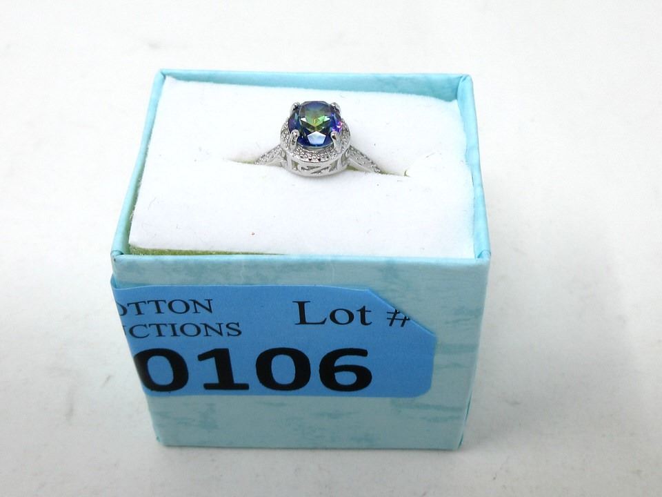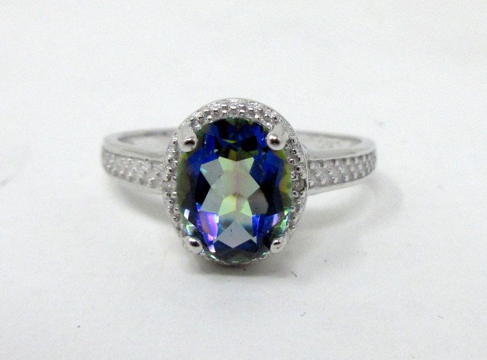 Oval cut, ocean blue mystic topaz & 2 diamonds. Includes $275 certificate.