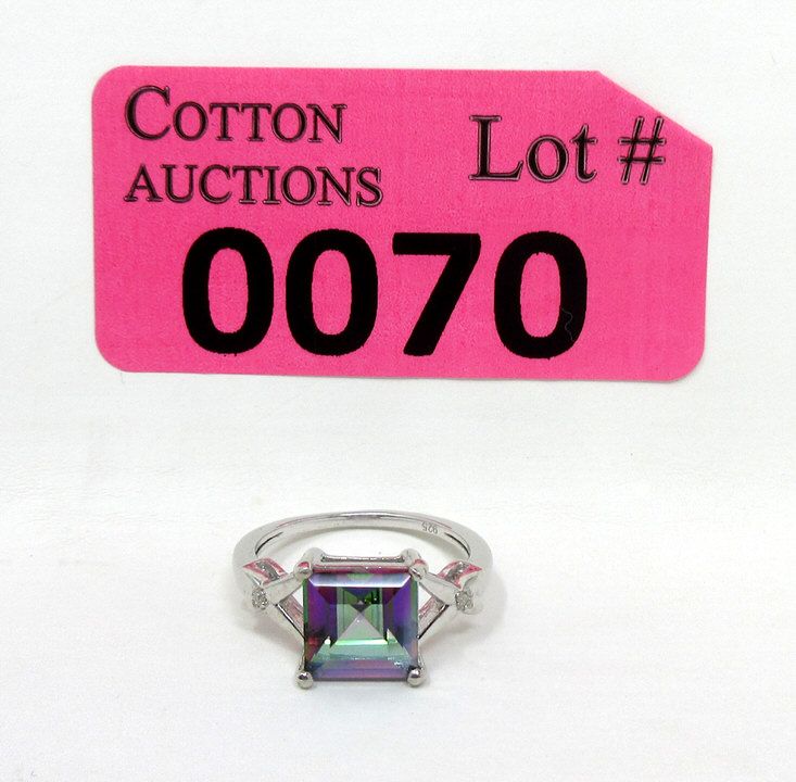 Princess cut topaz with 2 side diamonds. Retail value $315.