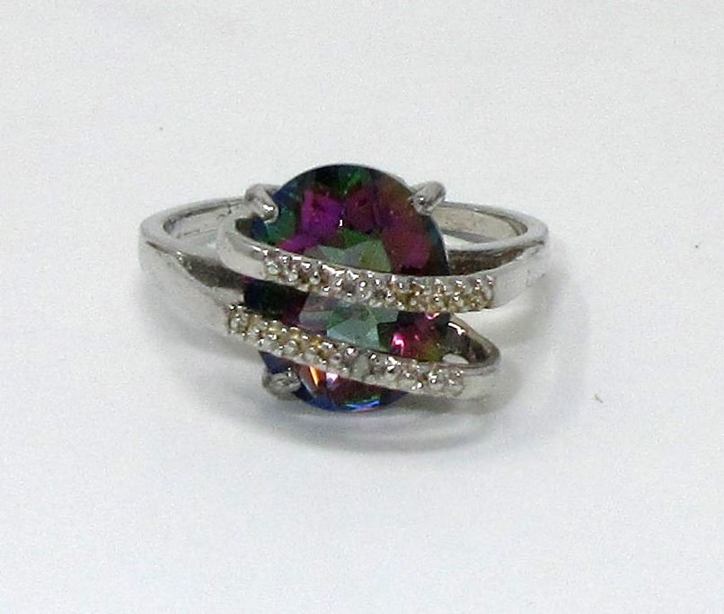 Sterling silver. Oval cut topaz. 2 Diamonds. Retail value $340.