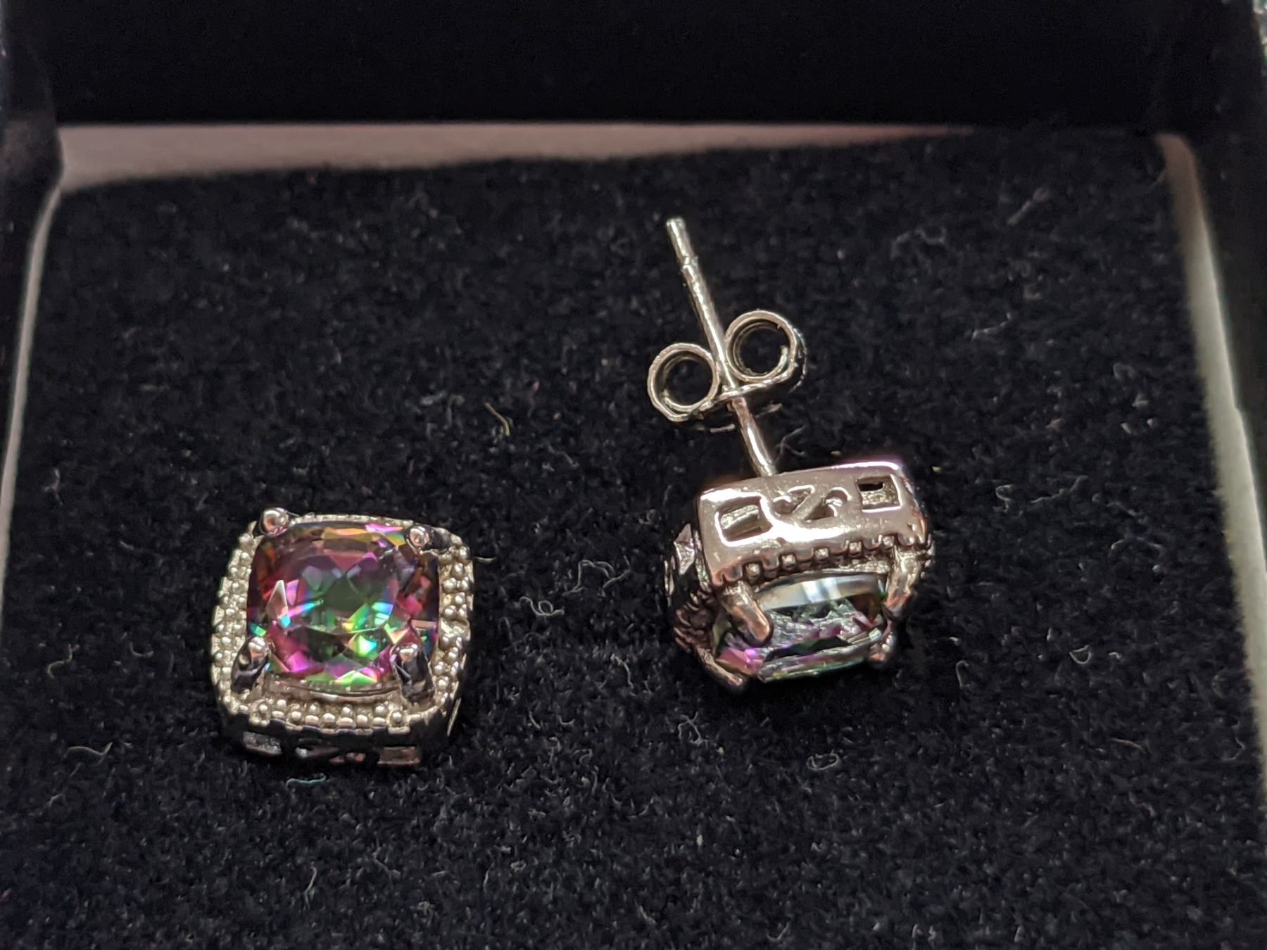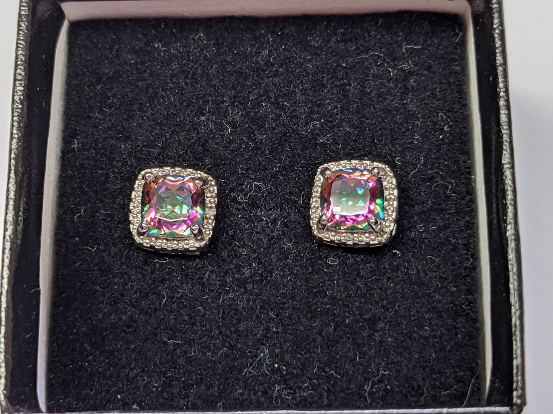 Mystic Topaz and Diamond 925 Sterling Silver Earrings -- 17% Buyer Fee. Payment Processed through Live Auction World Saturday @ 11:15 ( Visa or Master Card ) pick up Saturday Before 3:00, or Tuesday 9:30 till 5:02