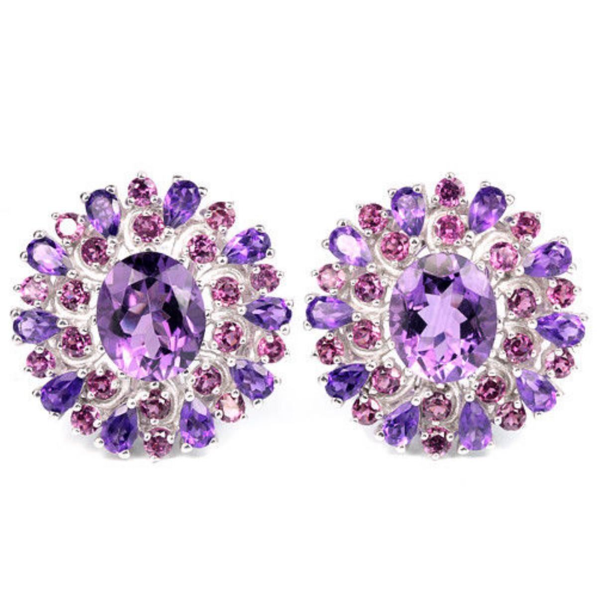 NATURAL AMETHYST & RHODOLITE GARNET 925 SILVER EARRING 14K WHITE GOLD COATING; STONE DIMENSION12 X 10 MM. , 5 X 3 MM. & 2.7 MM.ITEM WEIGHT14.6 GRAMCOLORPURPLE & PINK RASPBERRYCLARITYIF, VVS - VSLUSTERVIVACIOUSTREATMENTUNHEATEDORIGIN OF STONEBRAZIL & AFRICAHARDNESS7.0 - 7.5FACE OF EARRING 27 X 26 MM.