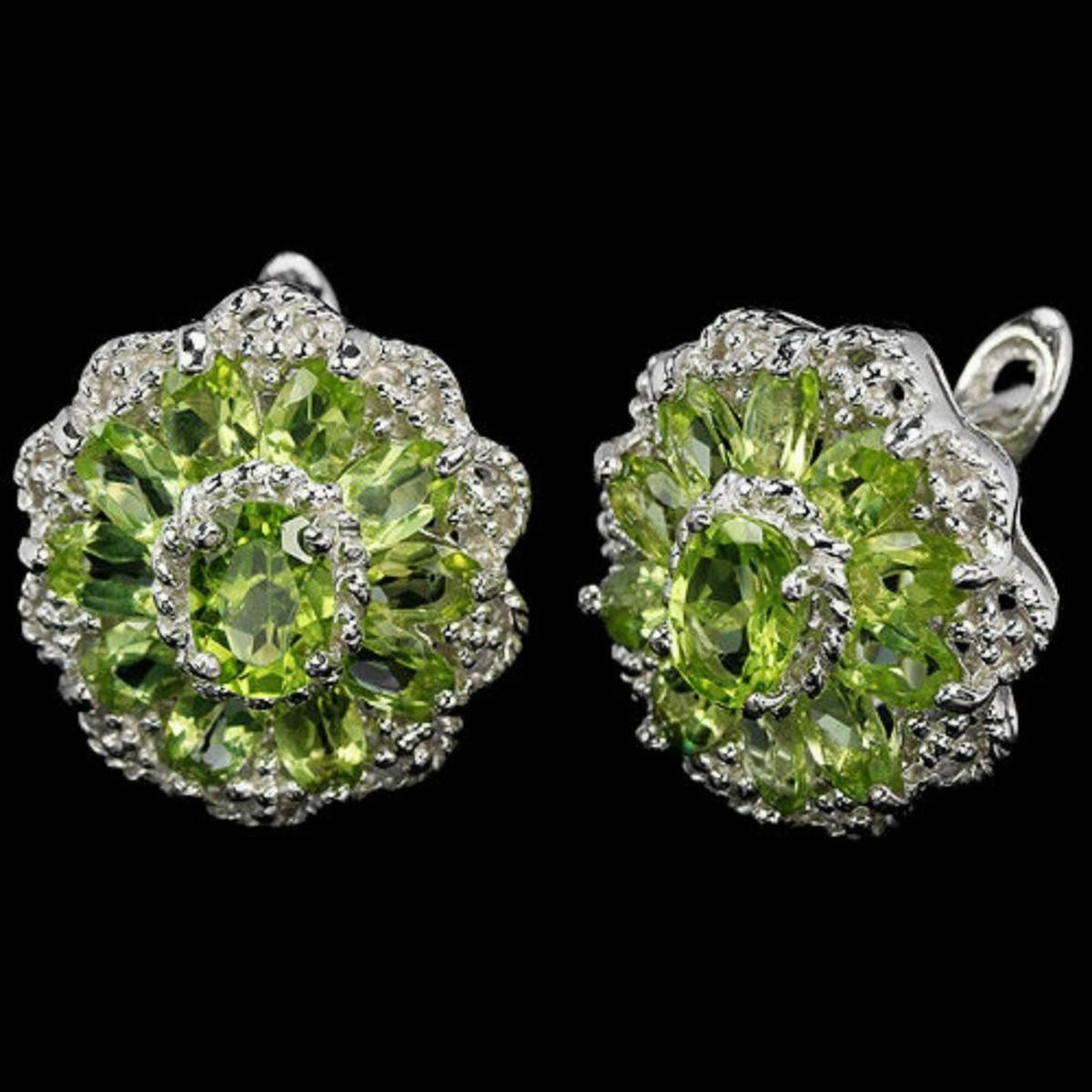 NATURAL AAA APPLE GREEN PERIDOT OVAL 925 SILVER EARRING 14K WHITE GOLD COATING; STONE SHAPE OVAL PORTUGUESE CUT STONE DIMENSION 7 X 5 MM. , 5 X 3 MM. ITEM WEIGHT 9.54 GRAM COLOR GREEN CLARITY IF TO VVS LUSTER ENCHANTING TREATMENT NATURAL UNHEATED ORIGIN OF STONE ASIA HARDNESS 6.5 OTHER FACE OF EARRING 20 X 18 MM.