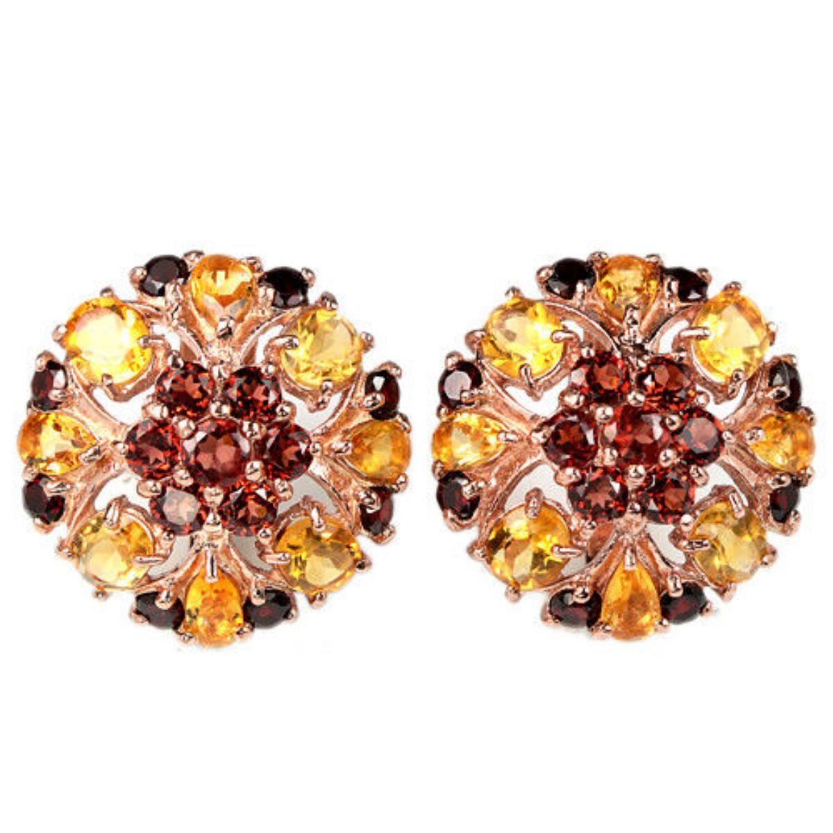 NATURAL DARK ORANGE RED GARNET & CITRINE 925SILVER EARRING 14K PINK GOLD COATING; STONE SHAPEOVAL & ROUND PORTUGUESE CUTSTONE DIMENSION5 X 4 MM. , 5 X 3 MM. , 3.5 MM. , 3 MM. & 2.5 MM.ITEM WEIGHT7.3 GRAMCOLORDARK ORANGE RED & YELLOWCLARITYIF - VVSLUSTERDAZZLINGTREATMENTUNHEATEDORIGIN OF STONECAMBODIA & BRAZILHARDNESS7.0 - 7.5;FACE OF EARRING 26 X 25 MM.