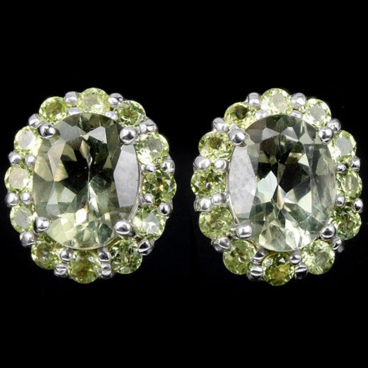 NATURAL AAA GREEN AMETHYST & PERIDOT 925 SILVER EARRING 14K WHITE GOLD COATING; STONE SHAPEOVAL & ROUNDSTONE DIMENSION10 X 8 MM. & 2.5 MM.ITEM WEIGHT6.4 GRAMCOLORGREEN & APPLE GREENCLARITYIF - VVSLUSTERDAZZLINGTREATMENTUNHEATEDORIGIN OF STONEBRAZIL & ASIAHARDNESS6.5 - 7FACE OF EARRING 15 X 13 MM.