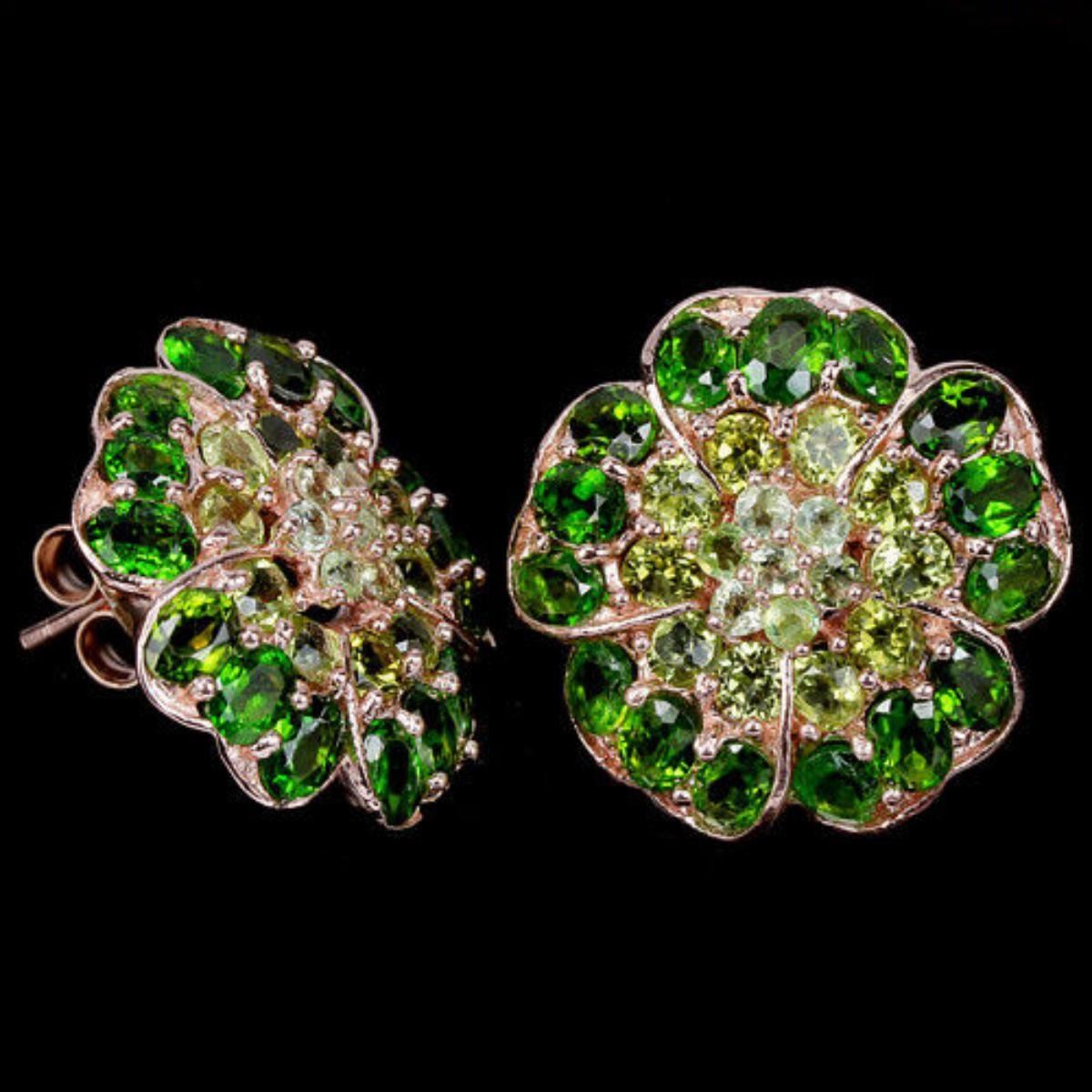 REAL GREEN CHROME DIOPSIDE & PERIDOT 925 SILVER EARRING 14K PINK GOLD COATING; STONE SHAPEOVAL & ROUND PORTUSGUESE CUTSTONE DIMENSION4 X 3 MM. , 3 MM. & 2 MM.ITEM WEIGHT5.9 GRAMCOLORGREENCLARITYIF, VVS - VSLUSTERDAZZLINGTREATMENTUNHEATEDORIGIN OF STONEAFRICA & ASIAHARDNESS6.5 - 7.0;FACE OF EARRING 21 X 20 MM.